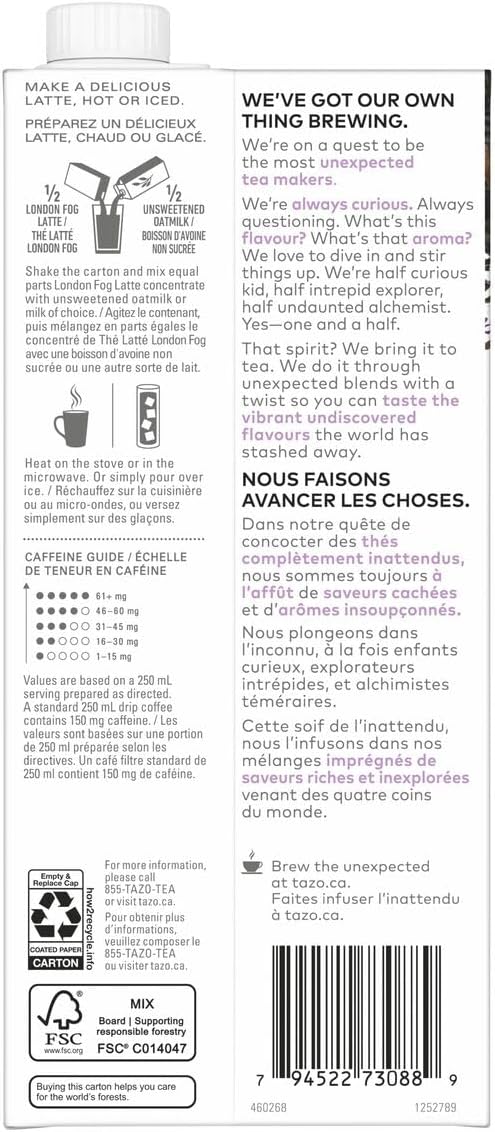 TAZO London Fog Latte 浓缩咖啡 - 946 毫升(1 包),居家咖啡馆体验,奢华浓郁的口味,含咖啡因,可热饮或冰饮