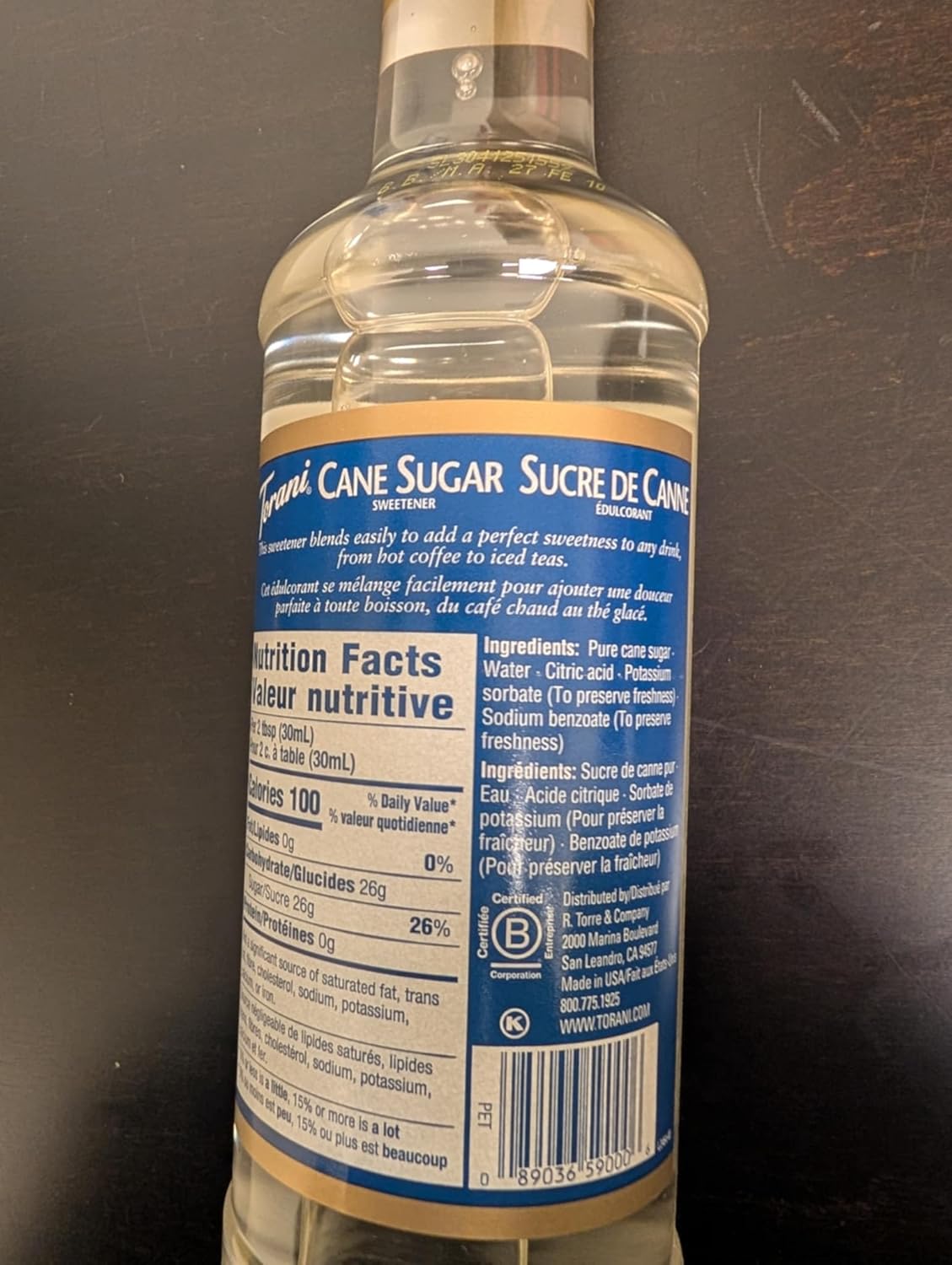 探索 Torani 糖浆的美味世界:Torani 糖浆提供黄金标准的风味和鲜艳的色彩,为您带来绝佳的饮品体验。搭配咖啡、茶、苏打水、鸡尾酒和甜点,美味无比。这些瓶子里的糖浆与您最爱的咖啡馆、餐厅或酒吧使用的糖浆相同。Torani 的手工糖浆由 Rinaldo 和 Ezilda Torre 于 1925 年发明。他们的配方从意大利带到了加利福尼亚。最初只有 5 种口味,如今已超过 150 种!该公司于 1994 年走向全球,将糖浆带到世界各地的咖啡馆和酒吧。作为一家公司,Torani 坚信企业可以成为日常的良性力量,当志同道合的公司携手合作时,就能带来更大的改变。他们是一家自豪的 B 类认证企业,并与有营利意识的公司携手合作,倡导为所有人创造机会。储存:Torani 调味糖浆无需冷藏。应储存在35°F至85°F之间。过敏原信息:本产品不含“八大”过敏原(花生、树坚果、乳制品、鱼类、贝类、大豆、鸡蛋、小麦)。