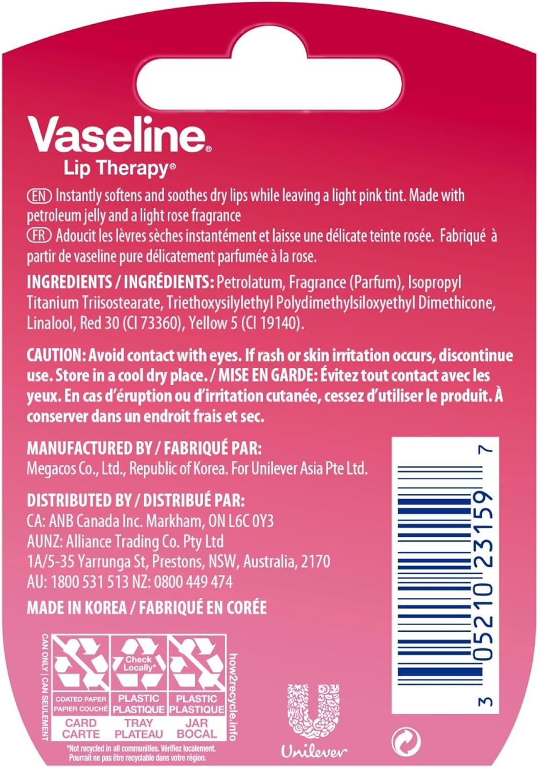 凡士林® 润唇膏® 玫瑰红唇迷你装,持久保湿,带有淡淡的玫瑰香味和颜色。