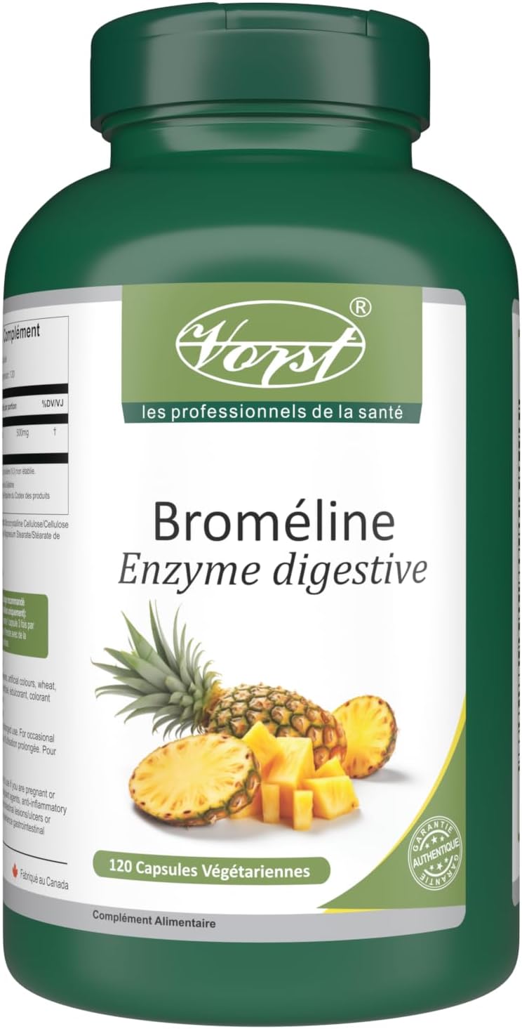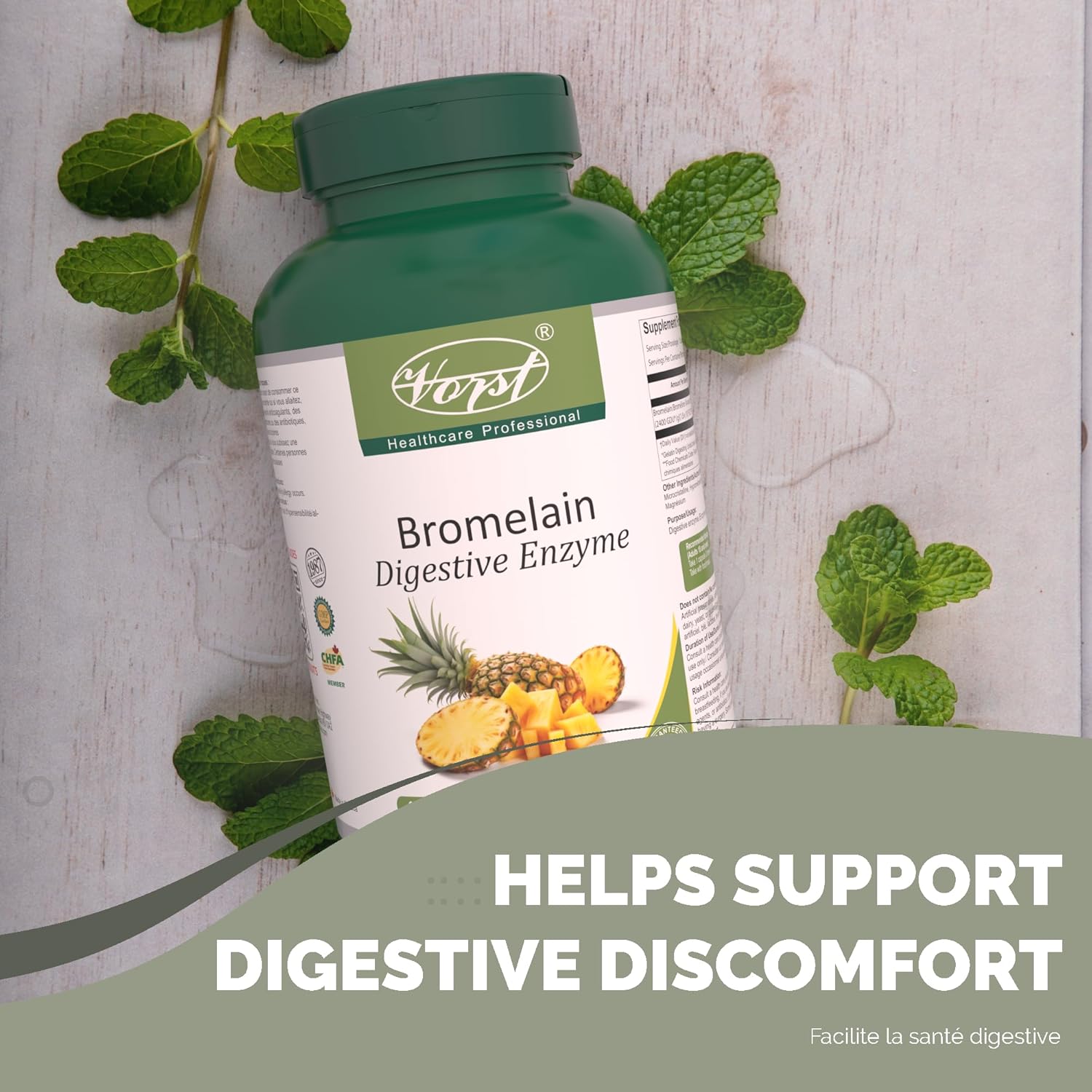 VORST 菠萝蛋白酶 500 毫克 2400 GDU/克 120 粒素食胶囊 | 男女适用消化酶 | 菠萝提取物,用于消炎和眼部健康 | 粉丸 | 1 瓶