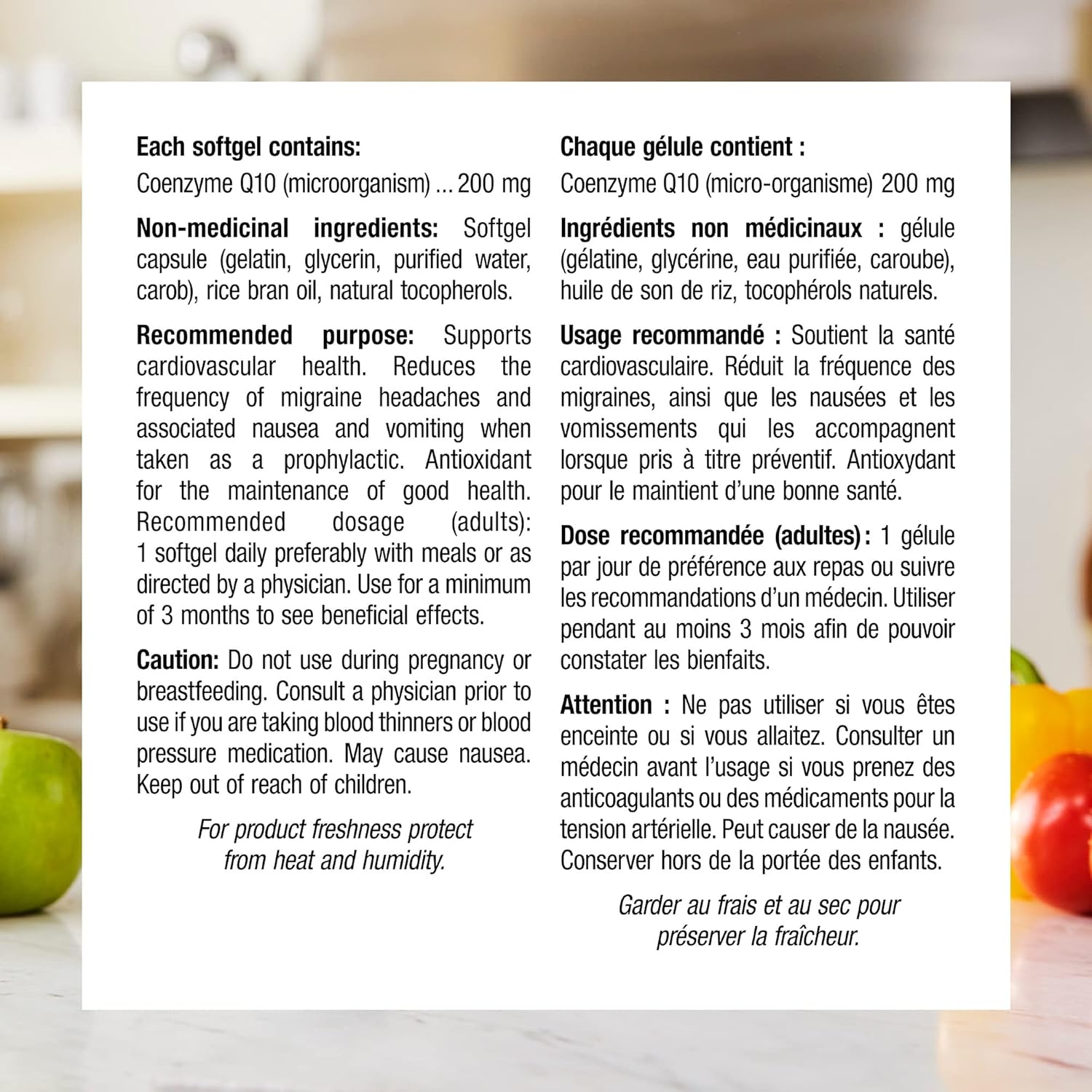 韦伯天然 (Webber Naturals) 的辅酶 Q10 200 毫克胶囊是一种抗氧化营养素,有助于维护心脏健康,并减少偏头痛的发作频率。辅酶 Q10 可在体内合成,但随着年龄增长和某些健康状况,其天然合成能力会下降。这款每日一粒的配方,每粒软胶囊含有 200 毫克辅酶 Q10。