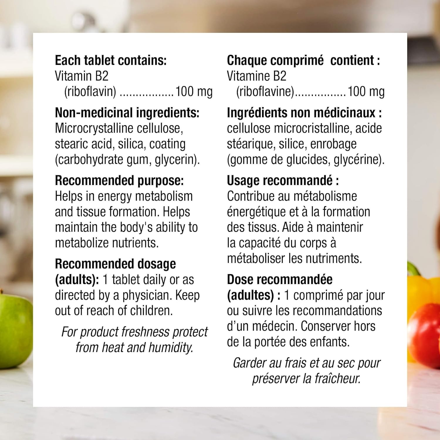 Webber Naturals 的维生素 B2 核黄素每日剂量可提供 100 毫克核黄素,为素食者提供了一种便捷且友好的补充方式,有助于促进能量代谢、红细胞生成和体内铁的循环。维生素 B2 也是维生素 B6 和叶酸转化为活性可用形式所必需的。