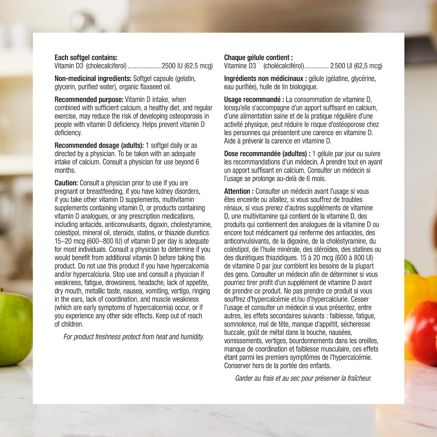 Webber Naturals 维生素 D3 2500 IU 加强型,180 粒软胶囊,有益于骨骼和牙齿健康,并有助于预防维生素 D 缺乏症
