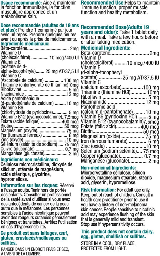 每日一片,适合 50 岁以上女性的复合维生素 - 含维生素 A、B6、B12、C、D、E、生物素、钙、镁和锌,有助于支持免疫功能、骨骼健康等,250 片装