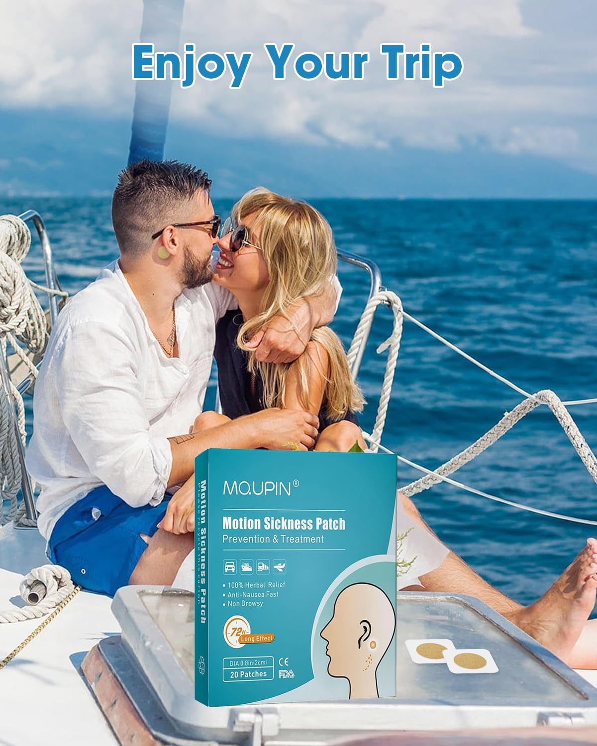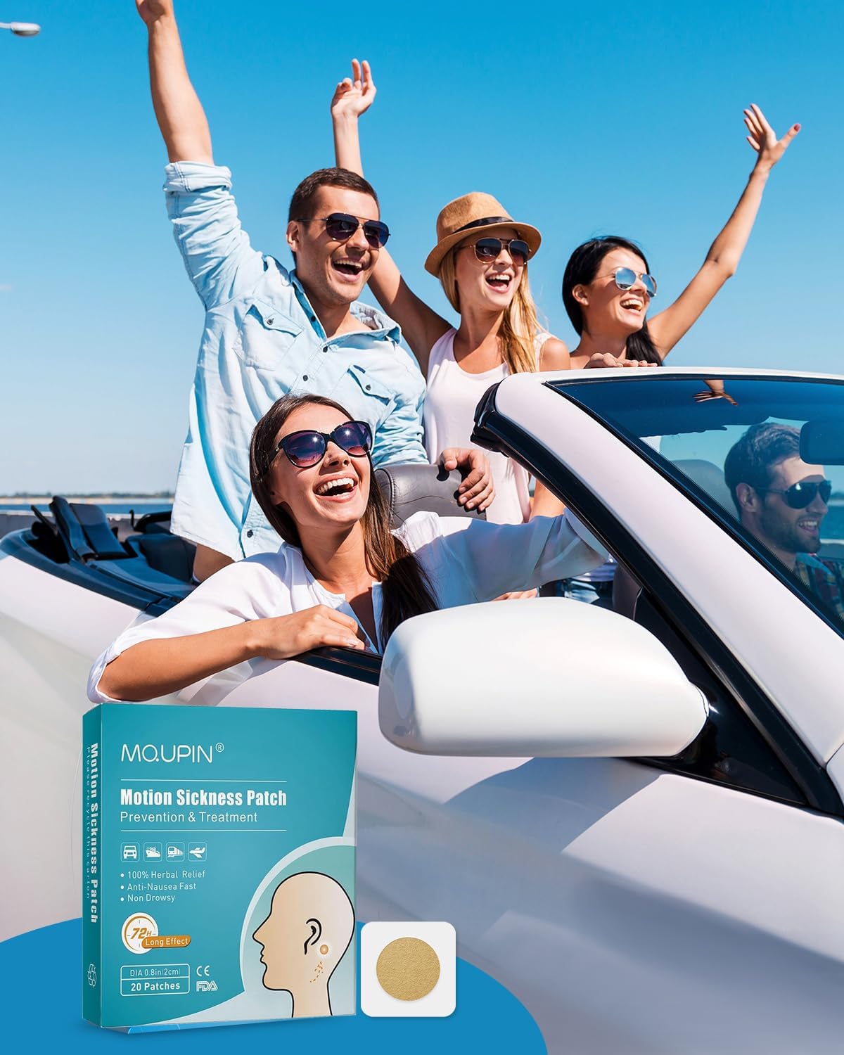 【旅行伴侣】晕车贴可缓解乘船、飞机、火车等交通工具引起的呕吐、恶心、头晕、厌食等症状。【有效对抗呕吐】起效快,不瞌睡。晕船贴可缓解乘汽车、轮船、飞机、火车等交通工具引起的呕吐、恶心、头晕、厌食等症状。【无副作用】防水防汗,轻薄舒适,使用携带方便。晕车贴在您最需要的时候缓解晕车症状,100%天然草本。对男性、女性、青少年和四岁及以上儿童安全有效。绿色、健康、温和、对身体无刺激。【易于使用】从棕色圆形污渍上取下白色塑料背衬,将粘合面贴在肚脐或耳垂后面干燥无毛的皮肤区域,每个耳朵后面都有与运动相关的污渍。抗恶心效果持续 72 小时,非常有效!【快速起效,持久】出行前 10 分钟贴上晕车贴,恶心贴可持续约 1-3 天。该贴片可同时用于耳后和肚脐。恶心贴片晕车贴具有高水性和优异的皮肤生物相容性。恶心贴片不易脱落。