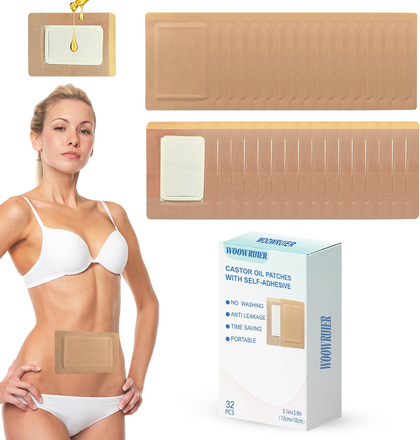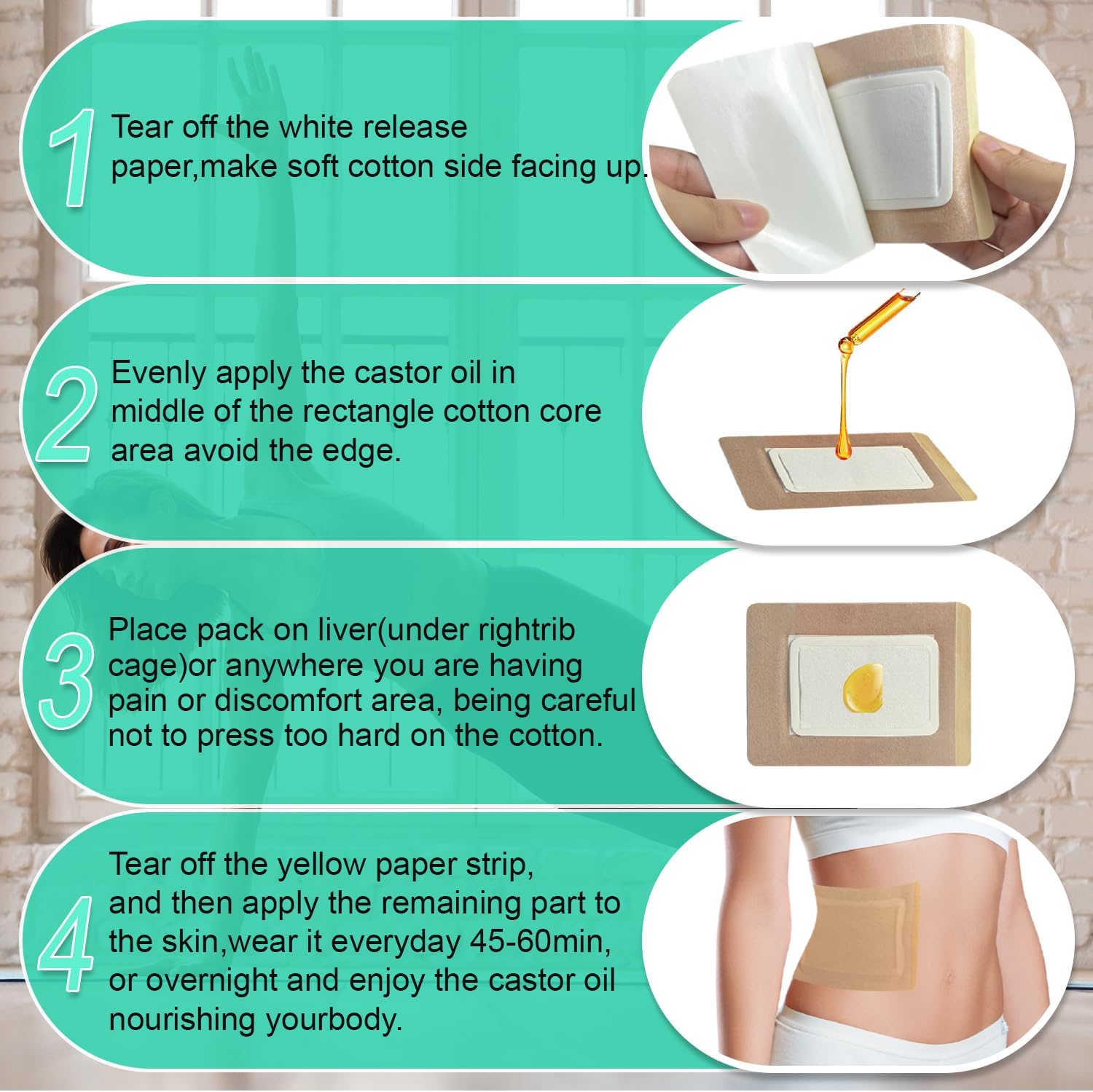 32 片蓖麻油贴片,一次性便携式蓖麻油包,带防漏棉,适用于腹部/脚/膝盖(不含油),5.1 英寸 x 3.9 英寸