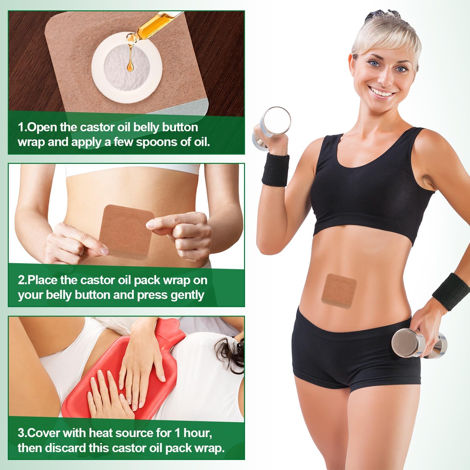 50 片一次性蓖麻油包裹肚脐垫,高吸收性自粘有机棉蓖麻油包裹促进消化,无需清洗,易于使用,防渗漏(不含油)