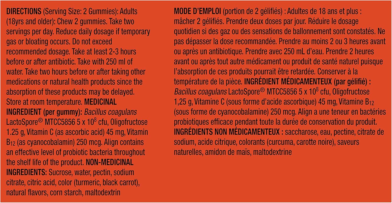 Align 肠道健康与免疫益生元 + 益生菌软糖,男女适用,有助于维持身体健康和免疫功能,柑橘味,50 粒