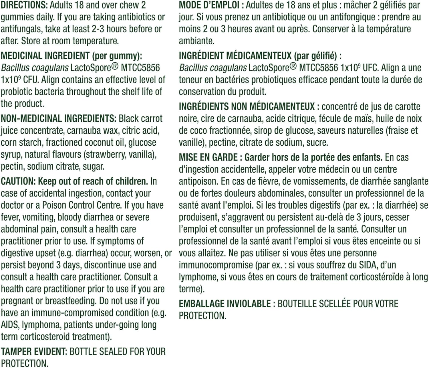 Align 益生菌软糖,男女适用,有助于支持胃肠道健康,采用天然水果口味制成,草莓味,60 粒软糖