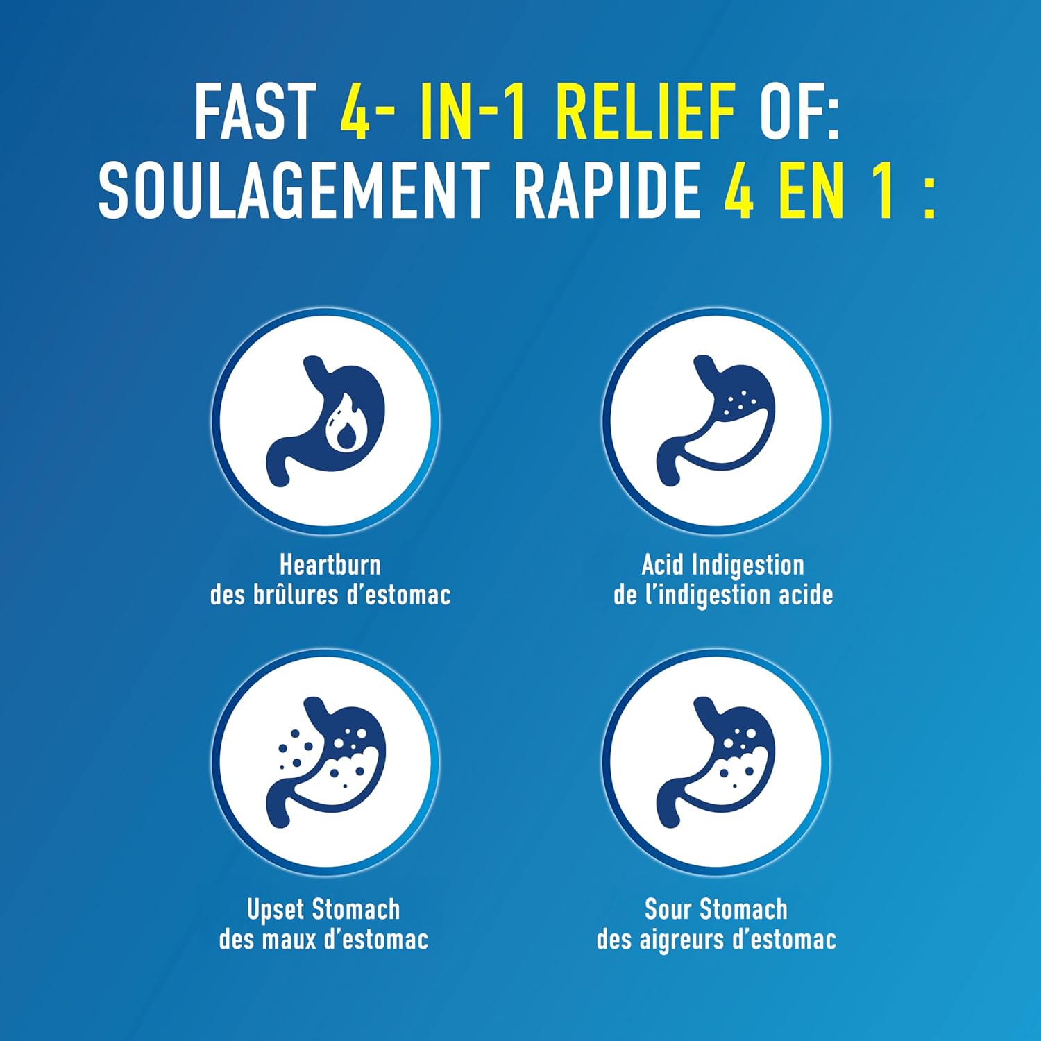 Alka-Seltzer 抗酸柠檬青柠泡腾片可快速强效缓解胃灼热、胃酸过多、胃酸反流和胃部不适等症状。这款泡腾片配方可快速溶于水,释放气泡,瞬间中和过量胃酸。Alka-Seltzer 能够温和地分解并快速消除您的胃灼热症状,让您专注于重要的事情。每片泡腾片均含有强效的活性成分组合:碳酸氢钠和柠檬酸。碳酸氢钠可以中和过量胃酸,而柠檬酸则有助于分解胃中的食物残渣。这款强效配方非常适合那些需要额外帮助来恢复消化系统功能的人。对于那些更喜欢泡腾片配方而非咀嚼式抗酸药片的人来说,它也是一个不错的选择。与抗酸咀嚼片不同,Alka-Seltzer 柠檬青柠泡腾片配方可在几秒钟内开始中和胃酸,带来即时缓解。 Alka-Seltzer 酸味缓解片方便易用,无论您是在家还是在旅途中。只需将一片泡腾片放入一杯水中,待其溶解后即可服用。泡腾片会迅速发挥作用,快速有效地缓解烧心、消化不良、胃酸反流和胃部不适等不适。这些抗酸片带有浓郁的柠檬青柠口味,溶解后不会留下任何白垩味。Alka-Seltzer 74 年来一直是值得信赖的品牌,致力于快速有效地缓解烧心、消化不良和反流症状,是寻求缓解消化不适人士的首选。