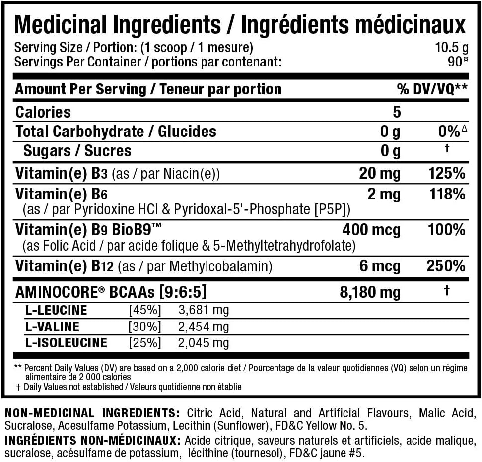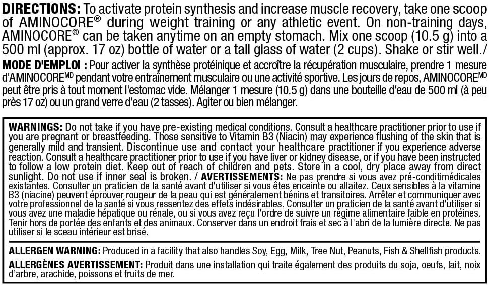 Allmax Aminocore 粉红柠檬水 945克 Aminocore 是一款美味易混合的支链氨基酸基质 (BCAA),每份可提供高达 8180 毫克的 BCAA 和 7 种不同形式的合成代谢 B 族维生素。每份均以 9:6:5 的比例提供纯净的 BCAA 粉末,可立即提升您的身体构建坚硬精瘦肌肉的能力。ALLMAX Nutrition - Aminocore BCAA - 8 克 BCAA - 100% 纯支链氨基酸 - 无麸质 - 菠萝芒果味 - 945 克 Aminocore 是一款美味易混合的支链氨基酸基质 (BCAA),每份可提供高达 8180 毫克的 BCAA 和 7 种不同形式的合成代谢 B 族维生素。每份都提供纯净的 9:6:5 比例的 BCAA 粉末,可立即提高您的身体构建坚硬、瘦肌肉的能力。