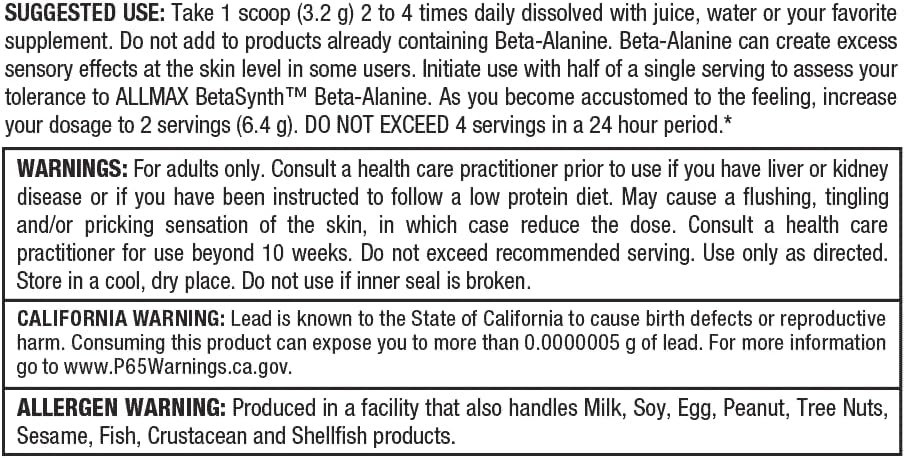 ALLMAX Nutrition - 100% 纯正强效 + 吸收 - β-丙氨酸 - 400 克