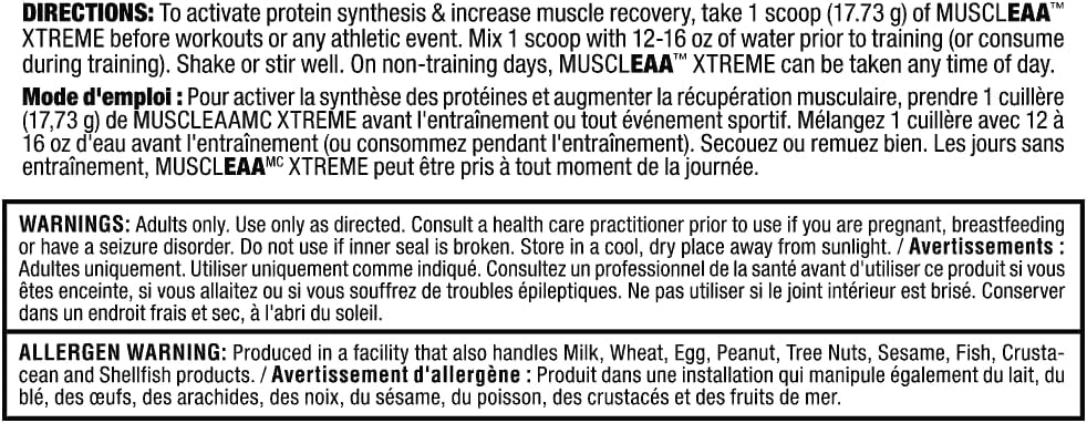 MUSCLEAA™ XTREME 让您每次锻炼后都能更加努力地训练并更快地恢复!* ALLMAX 的新款 MUSCLEAA™ XTREME 含有临床剂量的必需氨基酸和支链氨基酸 (BCAA),旨在最大限度地提高蛋白质合成