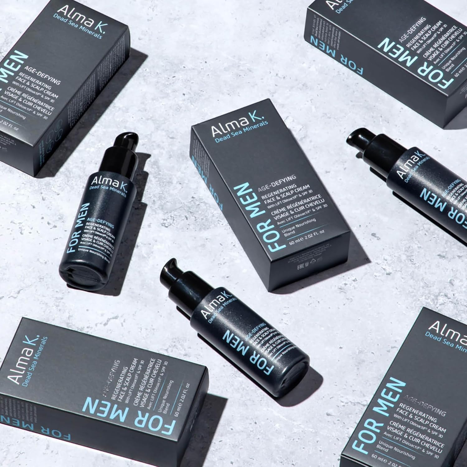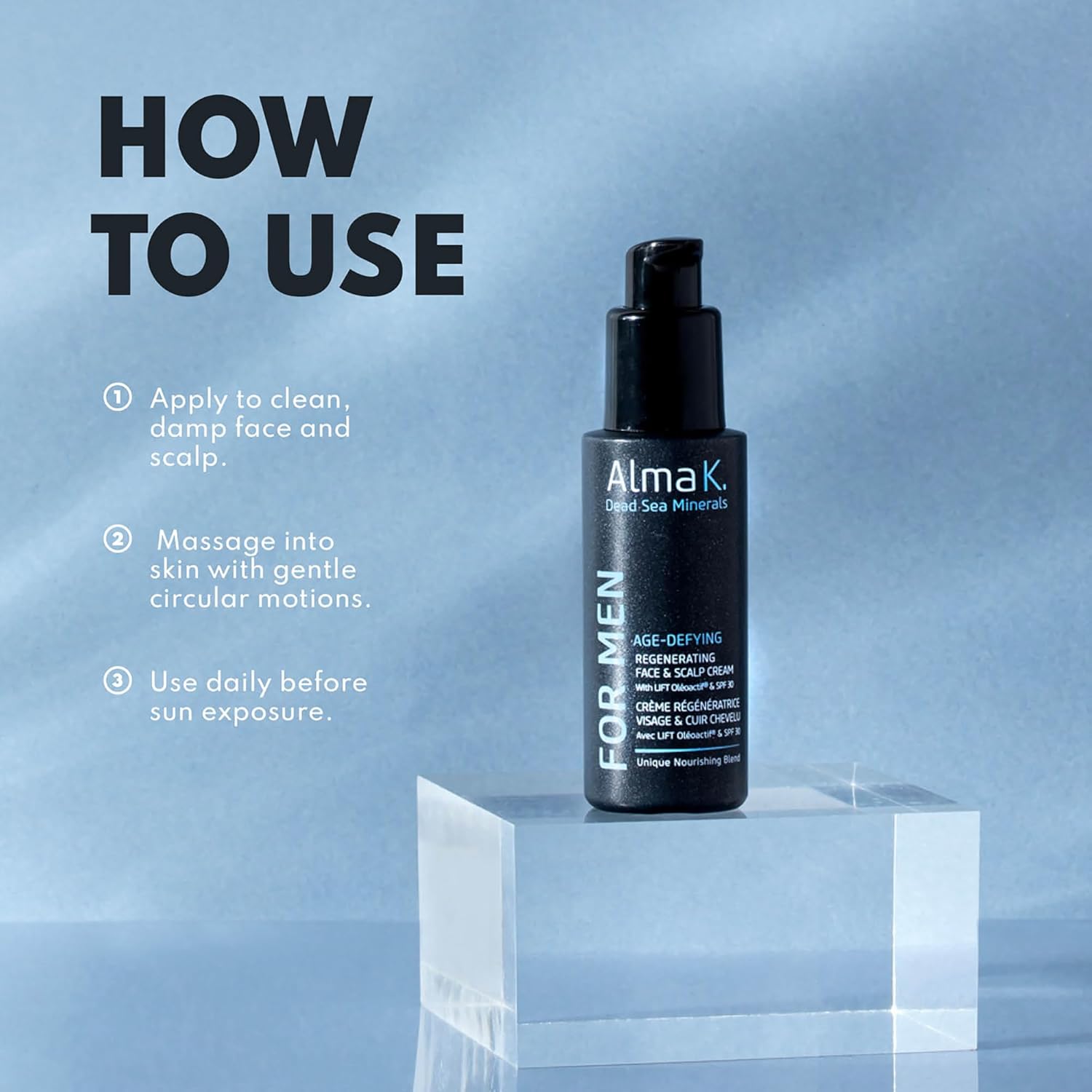 Alma K 抗衰老再生面部和头皮霜(含 SPF 30)- 含 SPF 的日常保湿霜 - 男士保湿霜 - 2 盎司