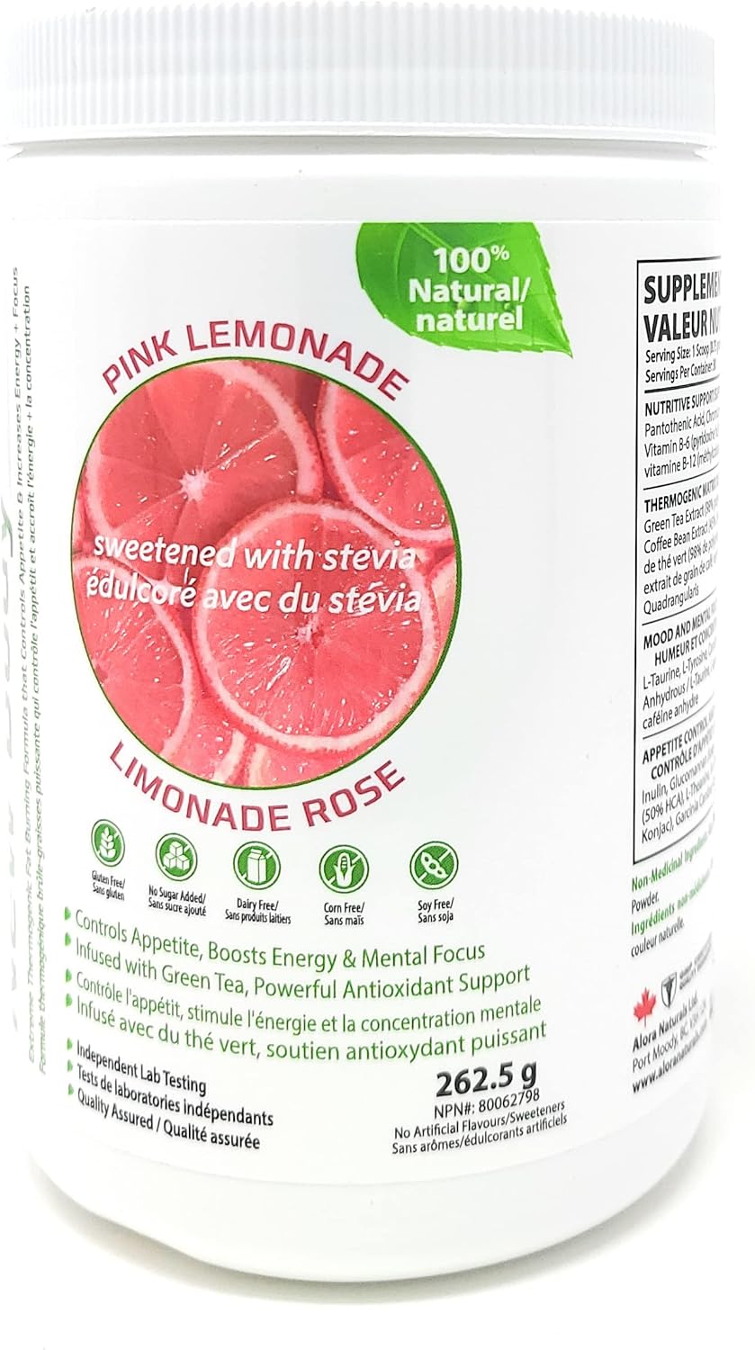 Alora Naturals - 全新体重管理粉红柠檬味,262.5克 - 极致生热燃脂配方 - 控制食欲、提升能量、增强专注力 - 融入绿茶
