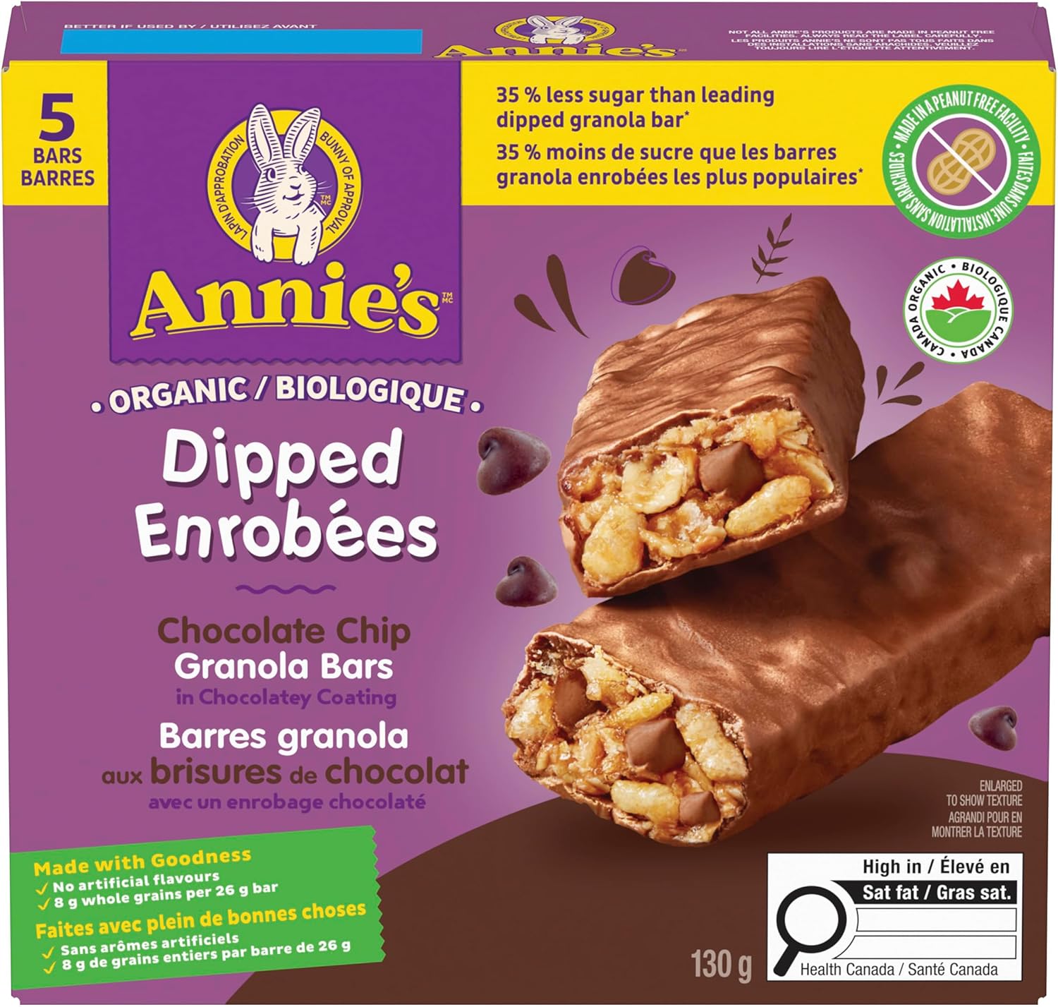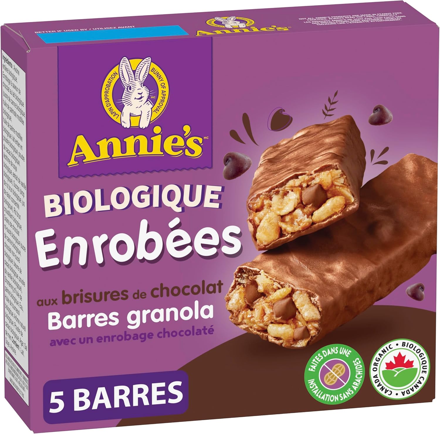 Annie’s 蘸有机巧克力片格兰诺拉麦片棒是完美的无负担、健康又美味的零食,会让您吃得欲罢不能!