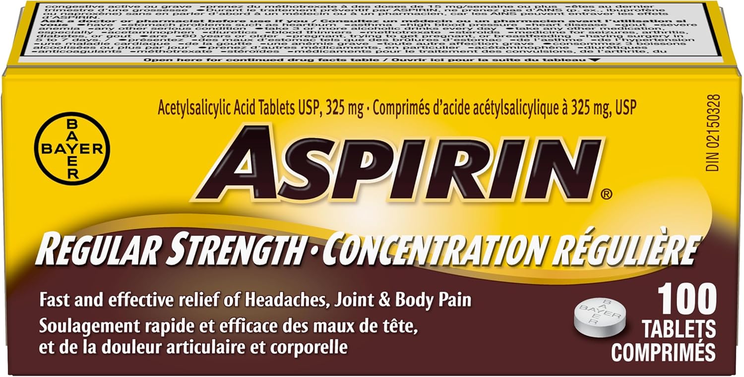 普通强度阿司匹林,325 毫克 ASA,快速有效缓解头痛、关节和身体疼痛、发烧,100 片
