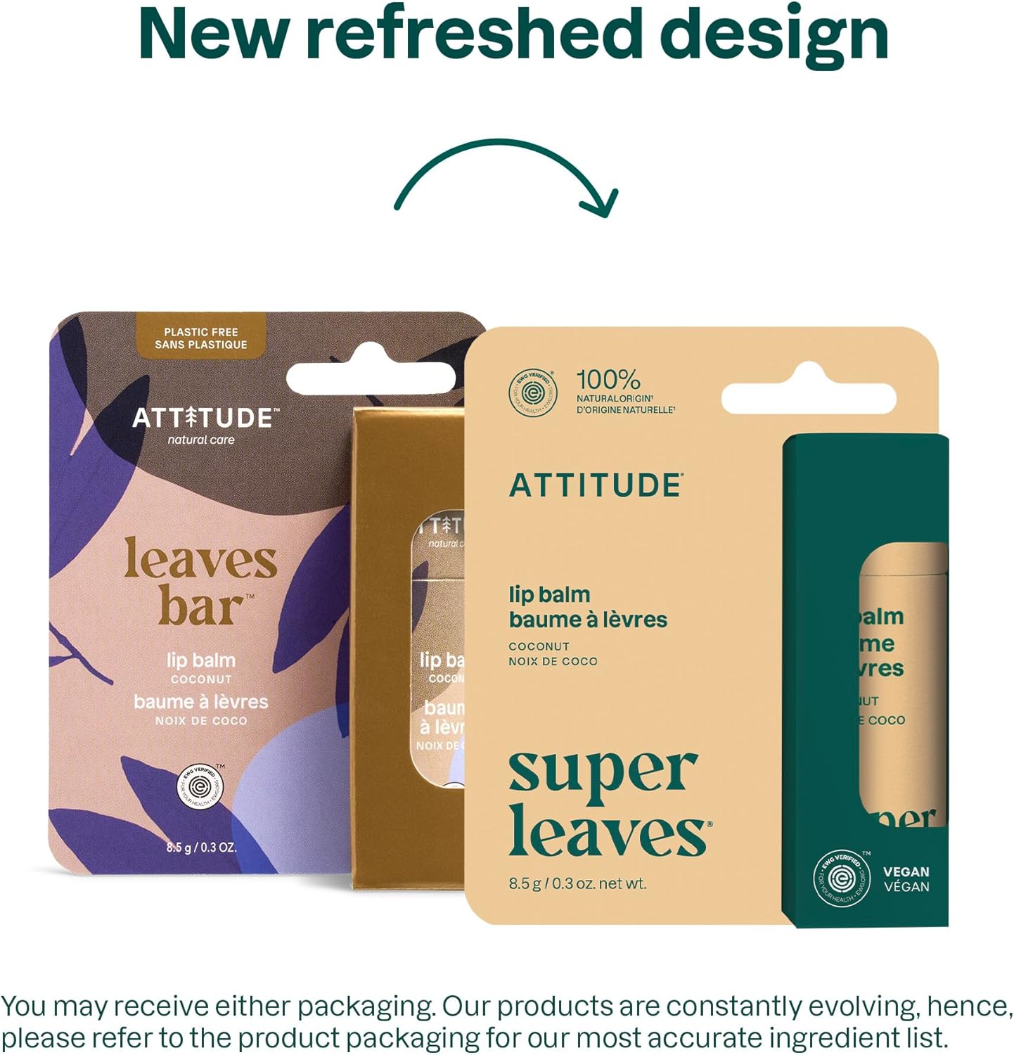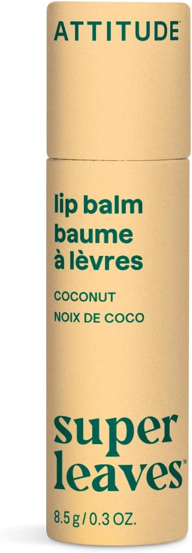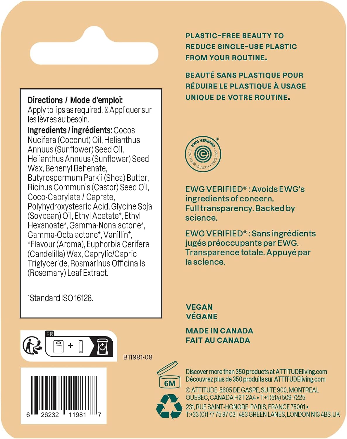 ATTITUDE 润唇膏,加拿大制造,天然来源,滋养和保护,乳木果油、椰子油和蓖麻油,经 EWG 认证,适用于干燥的嘴唇,男女皆宜,纯素,椰子,8.5 克