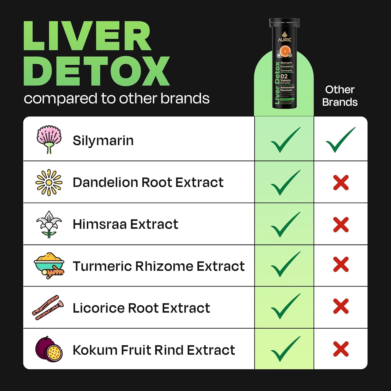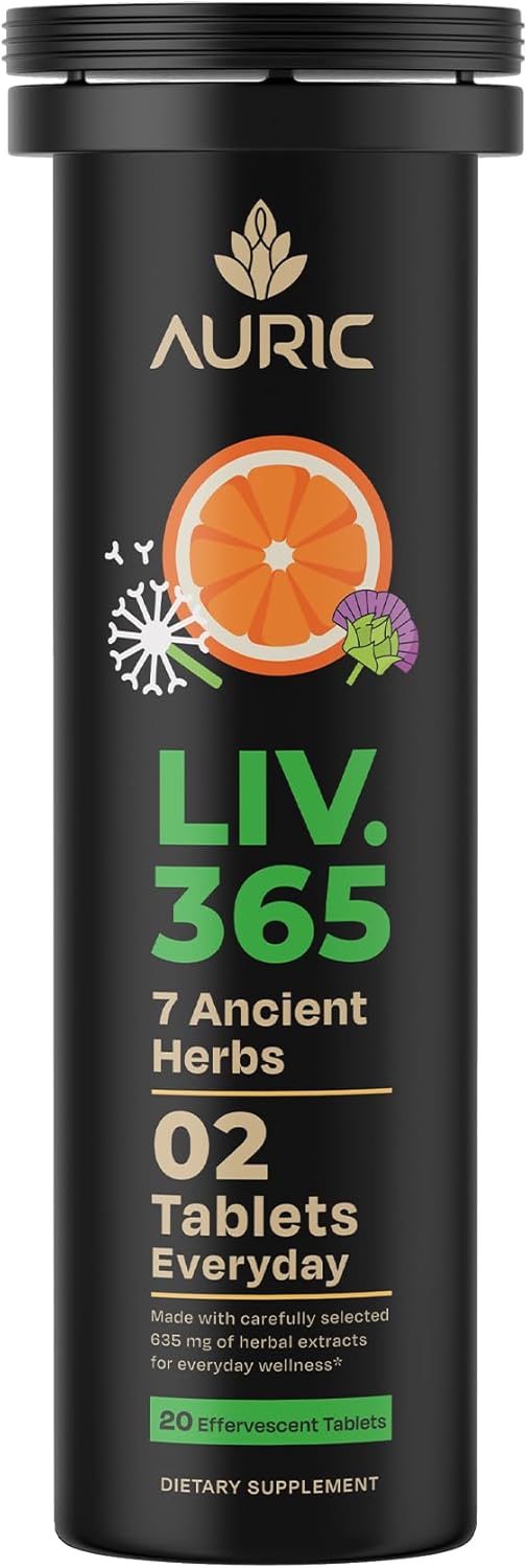 Auric 草本护肝补充剂 | 奶蓟草(水飞蓟素)、姜黄、大蒜、生姜,有益于肝脏健康 | 高级排毒清洁配方,有益于肝脏健康 | 20 片装 | 植物基,无麸质