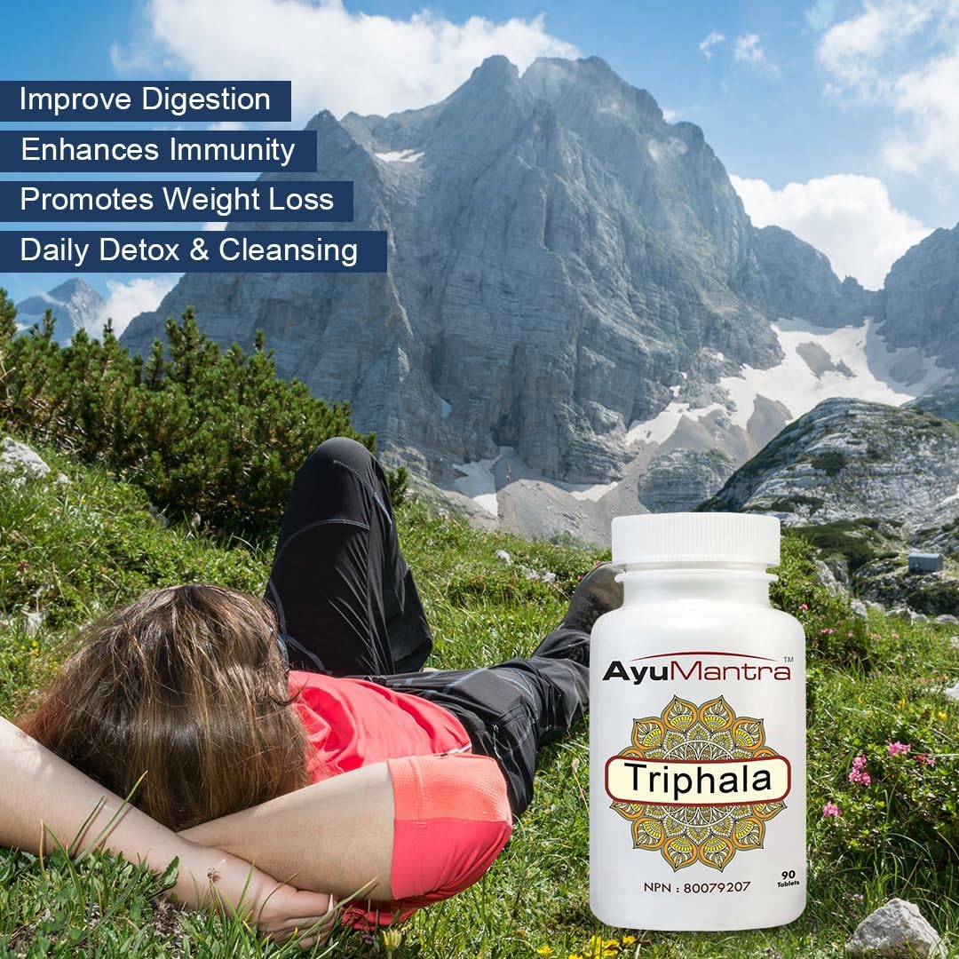 AyuMantra TriphalaTablets 阿育吠陀健康消化天然缓解片 1000 毫克/份 90 片