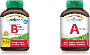 B100 复合超强效缓释片 - 加大装,非转基因,无麸质 杰米生 B 族复合维生素 100 毫克缓释片,提供人体必需的 B 族维生素,有助于提升能量,同时缓解压力。维生素 A 10,000 IU,100 片(1 包) 杰米生维生素 A 10,000 IU 是一款每日一次的维生素 A 补充剂。维生素 A 有助于增强夜视能力和视力,从而促进视力健康。维生素 A 还有助于促进健康皮肤的发育。