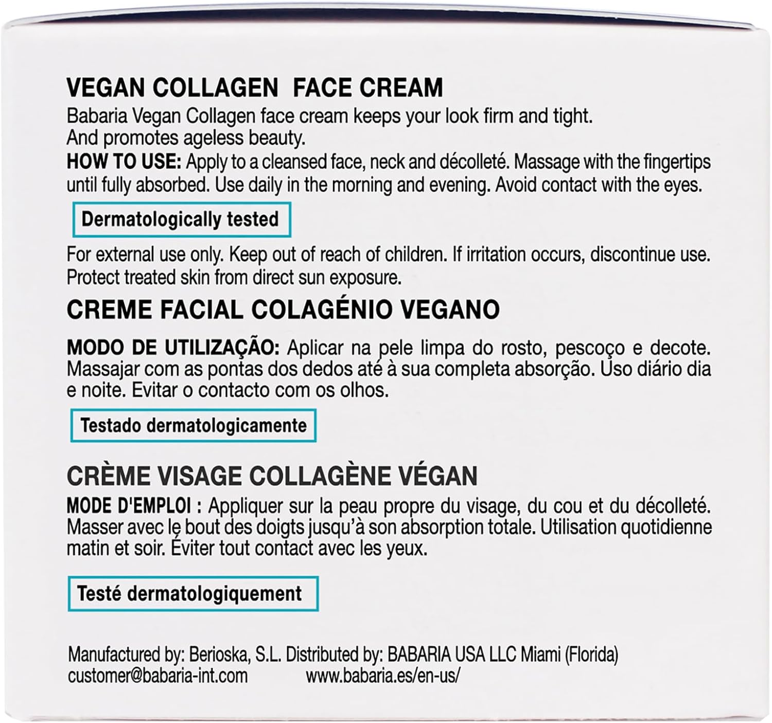 Babaria 胶原蛋白素食面霜 - 抗衰老面霜 - 保湿面霜 - 植物基面部保湿霜,焕活肌肤 - 1.7 盎司