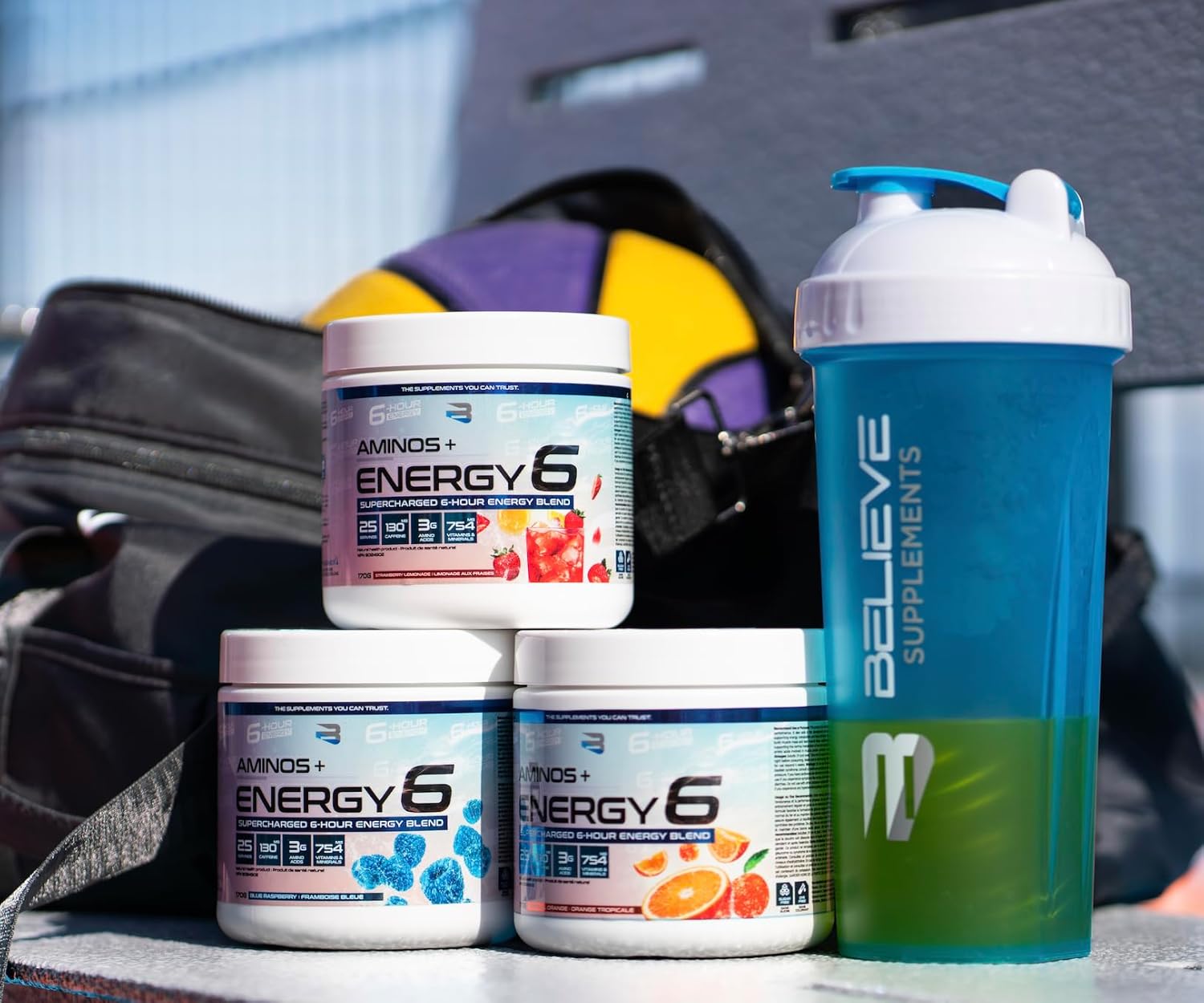 Believe Supplements - 氨基酸+能量 6-6 小时能量补充剂,含维生素、矿物质和兴奋剂 - 提升注意力和能量 - 零糖(蓝莓)