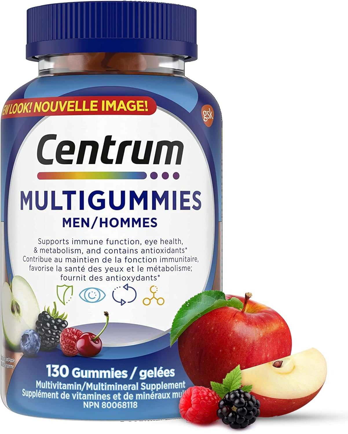 Centrum Performance 男女复合维生素/矿物质补充剂,含人参,提升能量,75 片装(包装可能有所不同)Centrum Performance 复合维生素富含人参,可缓解精神疲劳,并富含 B 族维生素,有助于促进能量代谢。Centrum Performance 有助于增强体能,支持免疫系统和认知功能,维持肌肉功能,并提供抗氧化剂,保护细胞免受自由基损伤。Centrum Performance 富含从维生素 A 到锌等各种微量营养素,有助于在细胞层面滋养您的身体,支持身体健康。凭借超过 35 年的营养科学专业知识,Centrum 是医生推荐的复合维生素第一品牌*,也是加拿大销量第一的复合维生素品牌**。本包装包含一瓶 75 片装的 Centrum Performance 复合维生素/矿物质补充剂。 (*基于 2020 年 3 月的 IMS Health 数据;**Centrum 的计算部分基于尼尔森通过其市场跟踪服务报告的截至 2020 年 10 月 31 日的 52 周期间成人维生素类别的数据)Centrum 男士多种维生素软糖,多种维生素/矿物质软糖,樱桃、浆果和苹果口味,130 粒(包装可能有所不同)Centrum 男士多种维生素软糖专为男士配制,含有抗氧化剂硒以及锌、镁和 B 族维生素,可满足成年男性的营养需求。Centrum 男士多种维生素软糖是一种美味的方式,有助于支持免疫系统,保持视力,维持身体代谢营养的能力,每天只需两粒软糖即可提供抗氧化剂。无麸质的 Centrum 男士多种维生素软糖配方由内而外滋养您的身体,支持身体健康。 Centrum 凭借超过 35 年的营养科学专业知识,是加拿大排名第一的医生推荐复合维生素品牌*和销量第一的复合维生素品牌**。本套装包含一瓶 130 粒装的 Centrum 男士复合维生素软糖,樱桃、浆果和苹果口味可选。(*基于 2020 年 3 月的 IMS Health 数据;**Centrum 的计算部分基于尼尔森通过其市场跟踪服务报告的截至 2020 年 10 月 31 日的 52 周成人维生素类别数据)