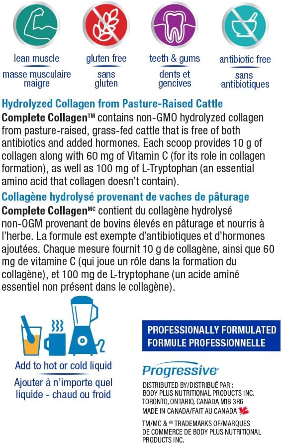 完全胶原蛋白粉补充剂 - 无味,500 克 | 非转基因、不含抗生素、不含激素Progressive 完全胶原蛋白有助于维持强健的骨骼、软骨和结缔组织。每勺含有 10 克胶原蛋白,并添加了维生素 C 和色氨酸,可确保胶原蛋白得到适当利用。服用胶原蛋白的其他好处包括支持健康的头发、皮肤和指甲。Progressive 完全胶原蛋白香草冰淇淋您活跃的身体需要帮助。无论您是运动、长时间工作、养家糊口还是总是在忙碌,您都需要修补和修复以跟上节奏。使用 Progressive® 完全胶原蛋白来强健骨骼、软骨、结缔组织等。什么是最佳自我状态?它使身体达到最佳准备水平,以便人们能够发挥出最佳水平。Iron Vegan Balanced 能量利用蘑菇和适应原的力量开启您的一天,让您的身心处于最佳自我状态。让您的水具有清爽的口感,每天饮用一次,可以对抗精神疲劳,让您精力充沛地度过一天。