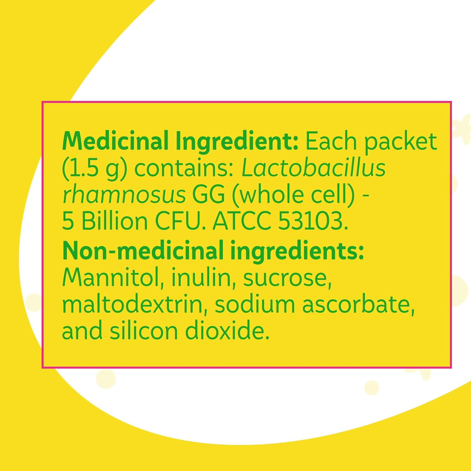 Culturelle Kids 每日益生菌是儿科医生推荐的品牌。† 本产品含有 50 亿菌落形成单位 (CFU)。采用 100% 天然来源的鼠李糖乳杆菌 GG (LGG),这是临床研究最丰富的益生菌菌株。††††††† 经证实,本产品有助于降低抗生素相关性腹泻的风险,并控制急性感染性腹泻,同时促进孩子的整体健康。††† 建议剂量:1 岁及以上儿童:每日 1-2 次,每次 1 包。为了控制或降低抗生素相关性腹泻的风险,请每日早晚各服用 1 包。如果您的孩子正在服用抗生素,请至少在服用抗生素前后 2-3 小时服用。Culturelle 拥有全系列产品,值得信赖,能够为家庭的每一位成员带来更佳的消化健康和整体健康。要亲自体验 Culturelle 的众多健康益处,请尝试 Culturelle 消化健康每日益生菌胶囊和咀嚼片。† 基于 2020 年对美国儿科医生推荐儿童益生菌品牌的调查。†† 基于对鼠李糖乳杆菌 GG 在整个生命周期中一系列益处的研究。††† 适用于成人和 1 岁以上儿童。††††† 基于 2020 年 Pharmacy Tims OTC 调查。†††††† 基于截至 2021 年 1 月的鼠李糖乳杆菌 GG 临床研究数量。*** 按照说明储存,保证在包装盒上注明的日期之前有效 ≠ 符合 FDA 的无麸质指南 Culturelle 是 DSM LGG 的商标,LGG 和 LGG 徽标是 Chr. Hansen A/S 的商标。