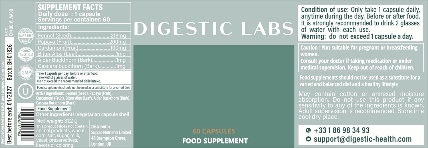 🔬 18 年科研成果:您是否厌倦了无效的便秘产品?厌倦了无法缓解便秘的泻药片、西梅汁、茶和灌肠剂?探索经科学验证的突破性解决方案,有效缓解便秘。订购 Digestic,一种 100% 天然植物基便秘补充剂。✔ 温和而有效:促进最佳结肠健康,调节肠道活动和消化系统。加强和支持胃肌收缩,促进日常排便。Digestic 是治疗便秘的有效天然泻药。💪🏻 革命性配方:革命性的天然草本泻药,含有助消化剂和消化兴奋剂。天然排毒清洁剂,独特的草本和植物混合物,缓解便秘、腹胀和胀气。天然大便软化剂,促进排便……100% 天然成分。✔ 安全有效:经临床测试,无副作用,不上瘾。不会形成习惯。可长期每天安全使用。在符合 GMP 标准、经 FDA 注册的工厂生产。工作原理:便秘、硬便或腹胀等肠道不规律会导致肠道排空困难。一旦药丸溶解,Digestic 的全天然活性成分就会在胃中释放。这些成分刺激结肠,使其通过收缩和扩张以正确的方式积极工作。这会导致身体以健康的方式排出排泄物,而不会出现任何腹泻。🏆 专业人士授予:Digestic 于 2019 年被美国科学补充剂协会评为消化健康最佳产品。 Digestic 对健康和品质的承诺:符合 GMP 标准、FDA 注册设施、第三方检测、纯素认证、犹太洁食认证……★100% 满意保证★:我们对我们的产品充满信心。如果您对我们的产品有任何不满意,请在 30 天内告知我们,我们将全额退款。