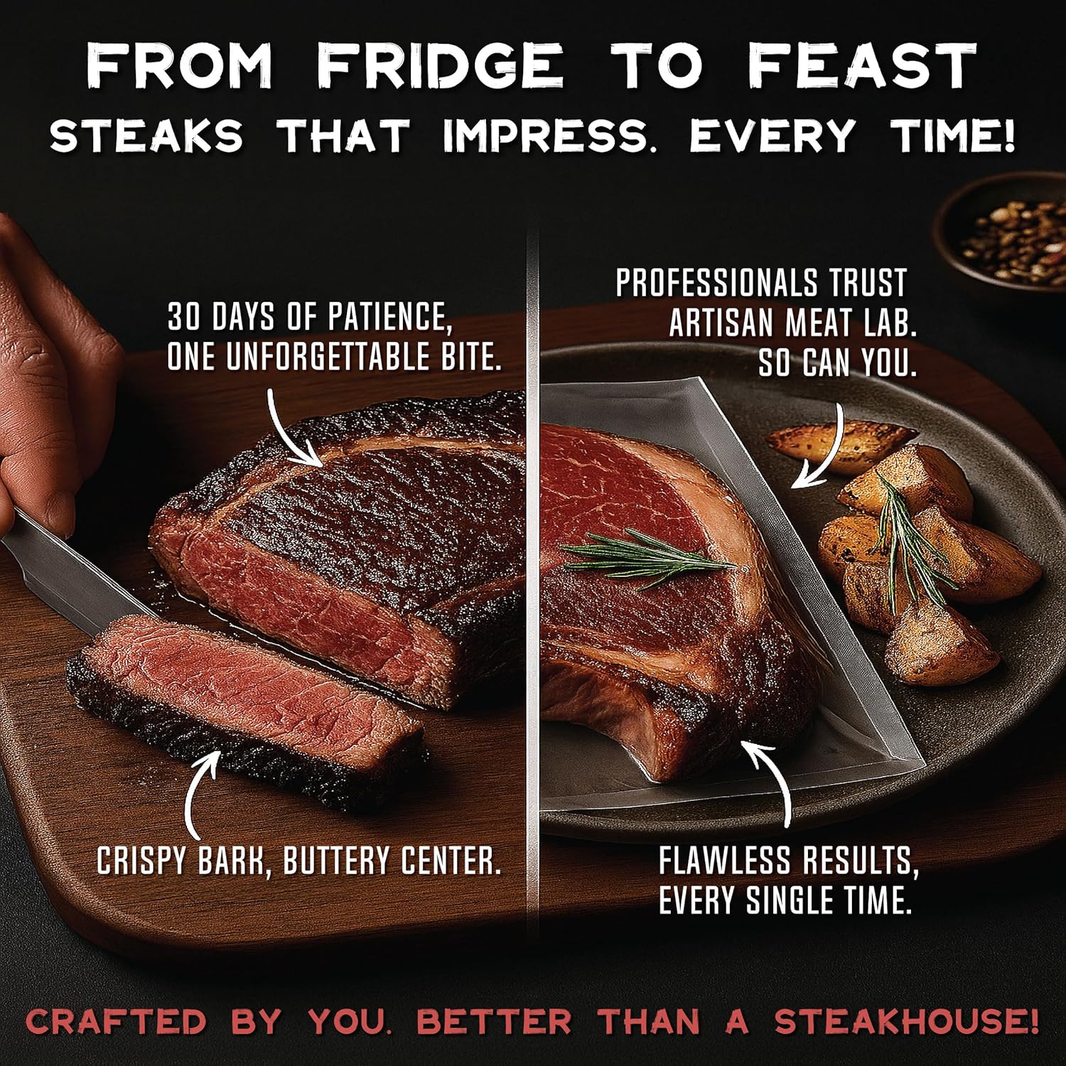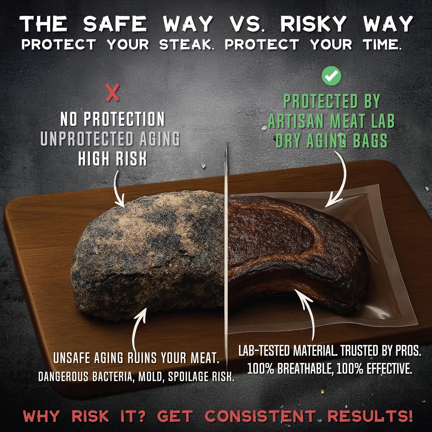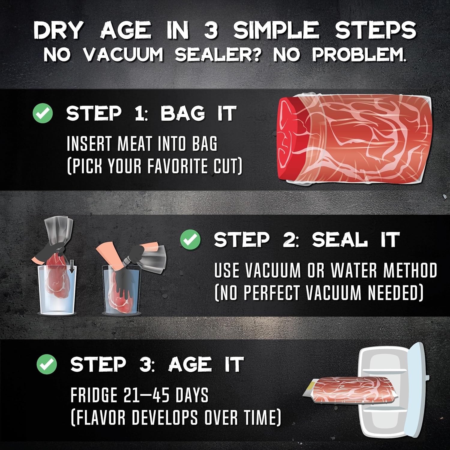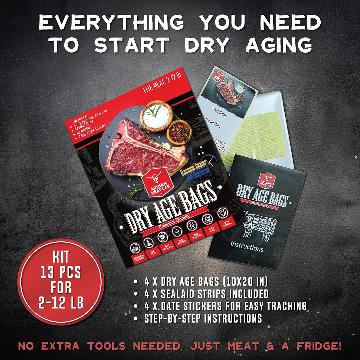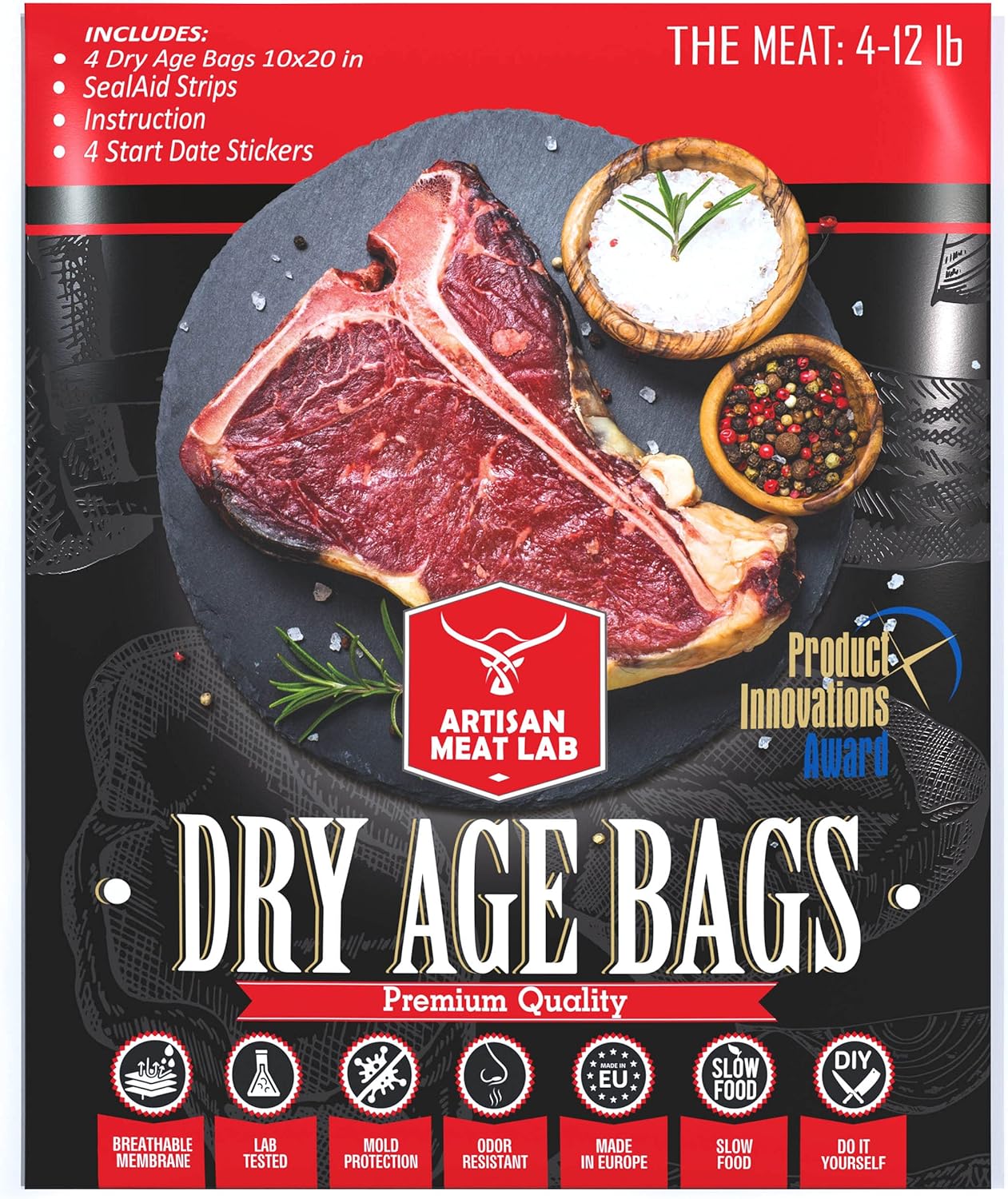 干式熟成袋透气膜套件,轻松制作美味的DIY熟成牛排。4件干式熟成袋套装 25x50厘米(10x20英寸)1-5公斤(2-12磅) - Artisan Meat LAB