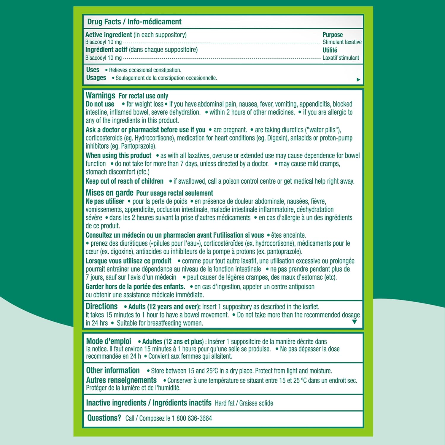 当您需要快速、可靠地缓解偶发性便秘时,Dulcolax 比沙可啶泻药栓剂是您的理想之选。Dulcolax 比沙可啶栓剂采用 3 粒装包装,每粒栓剂含 10 毫克比沙可啶。比沙可啶能够刺激肠道蠕动,帮助肠道保留水分,从而软化粪便,使其更快排出。这款泻药栓剂可为成人、12 岁及以上儿童以及哺乳期妇女有效缓解偶发性便秘,用药时间最短为 15 分钟至 1 小时。Dulcolax 是全球排名第一的非处方泻药品牌(1)。查看其他 Dulcolax 产品,找到最适合您的产品。60 多年来,Dulcolax 一直备受信赖,无论您何时需要快速缓解偶发性便秘,都能找到合适的产品。为确保本产品适合您,请务必阅读并遵循标签上的说明。 (1) 根据 Nicholas Hall 的全球 CHC 数据库(2021 年 4 月 22 日,DB6,信函日期)