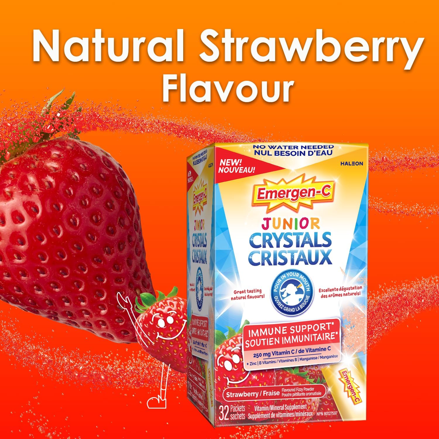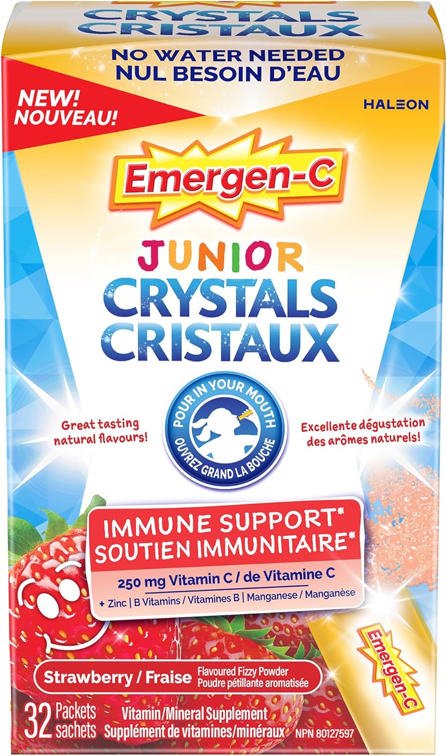 无需加水,入口即化,增强免疫力,同时还能带来一丝清爽的口感。全新 Emergen-C Junior Crystals 富含维生素和矿物质,有助于提升儿童的免疫健康、能量代谢和整体健康。另有美味纯天然草莓口味可选。