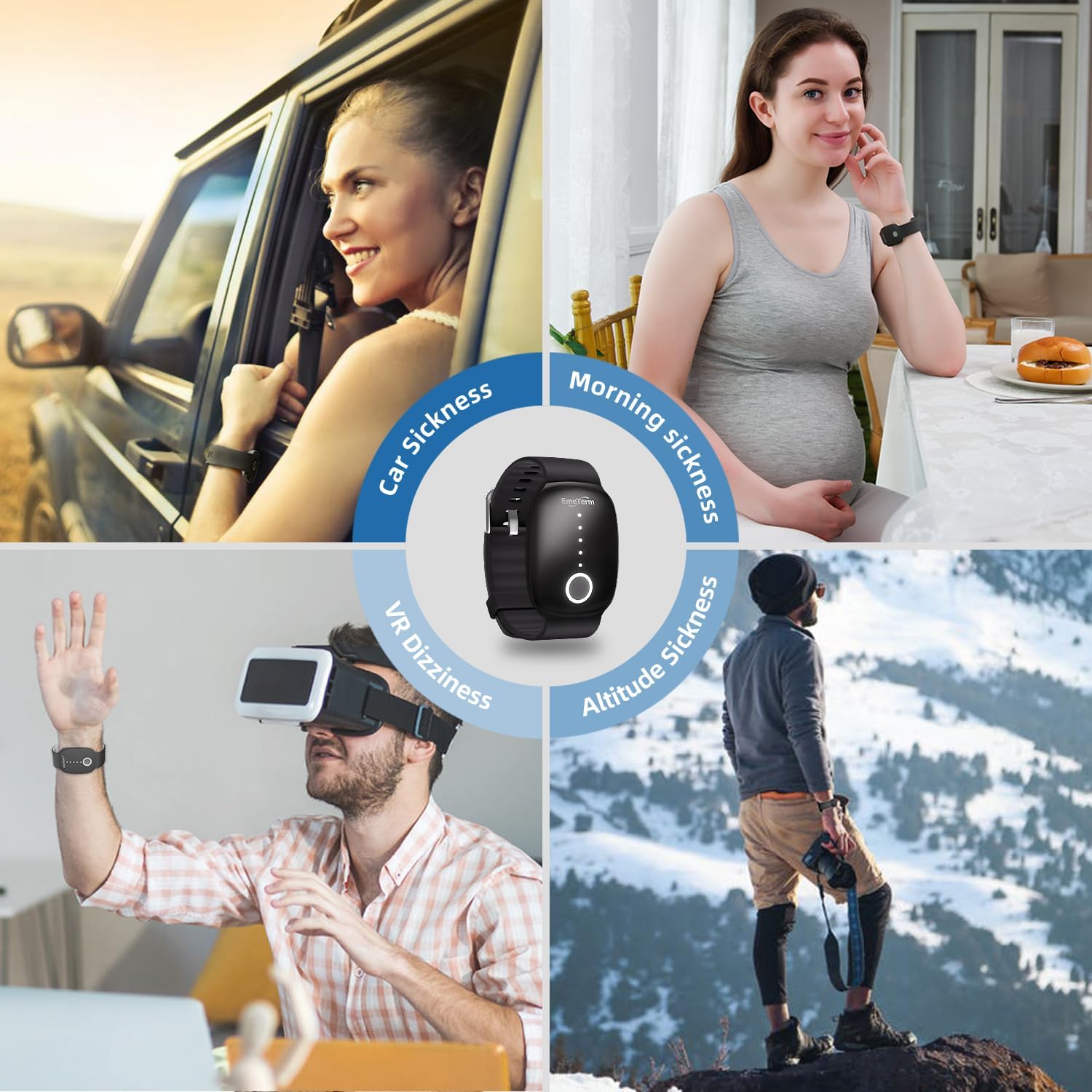 EmeTerm 时尚 FDA 认证 缓解恶心电极刺激器 孕吐 晕车 呕吐缓解 可充电 无凝胶 无药物腕带 无副作用 - 墨黑色