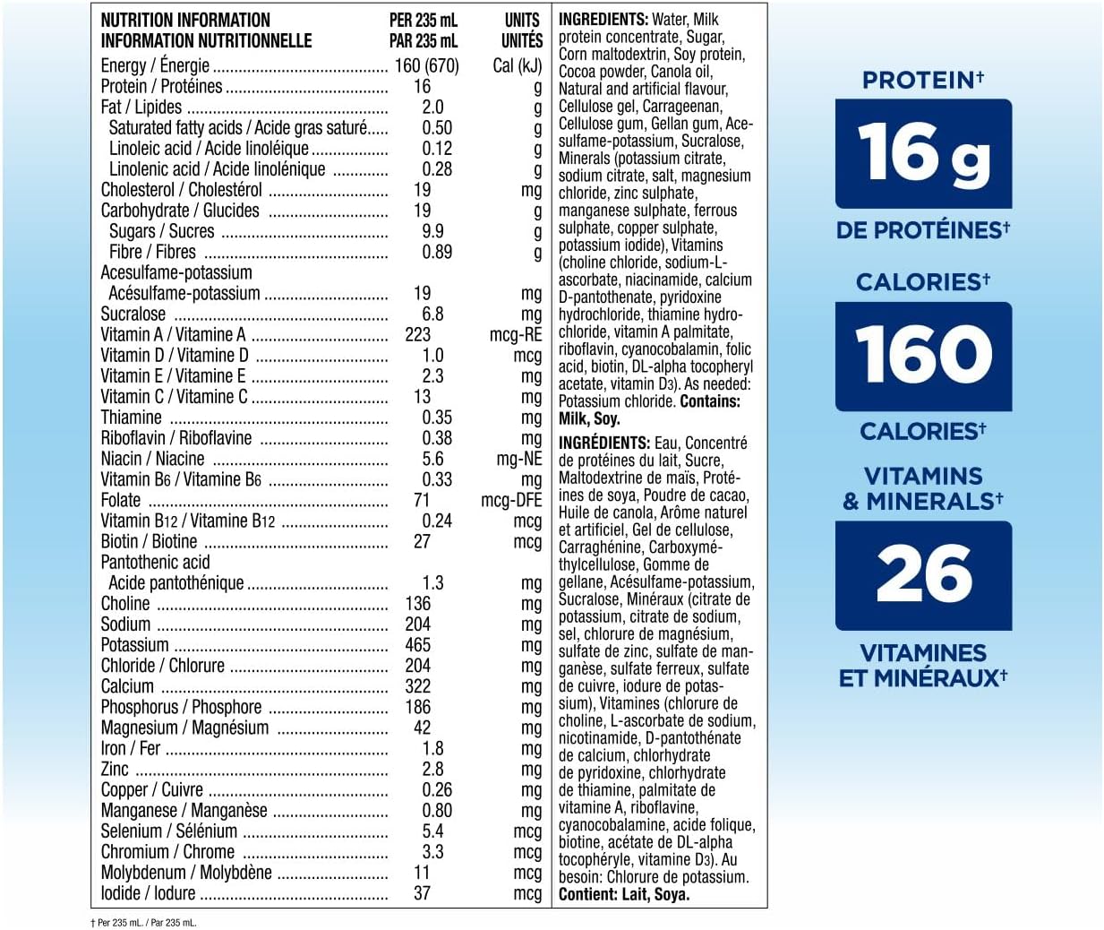 安素高蛋白 16 克,来自医生推荐排名第一的品牌,是一款高蛋白营养补充剂,可帮助您保持活力和精力。安素高蛋白 16 克富含蛋白质(16 克),低卡路里(每 235 毫升含 160 卡路里)。每份美味的饮品都含有 26 种维生素和矿物质。安素高蛋白 16 克采用方便的即饮形式,方便您在旅途中享用,是补充能量的绝佳选择。卡路里含量比安素高蛋白 12 克低 29%。