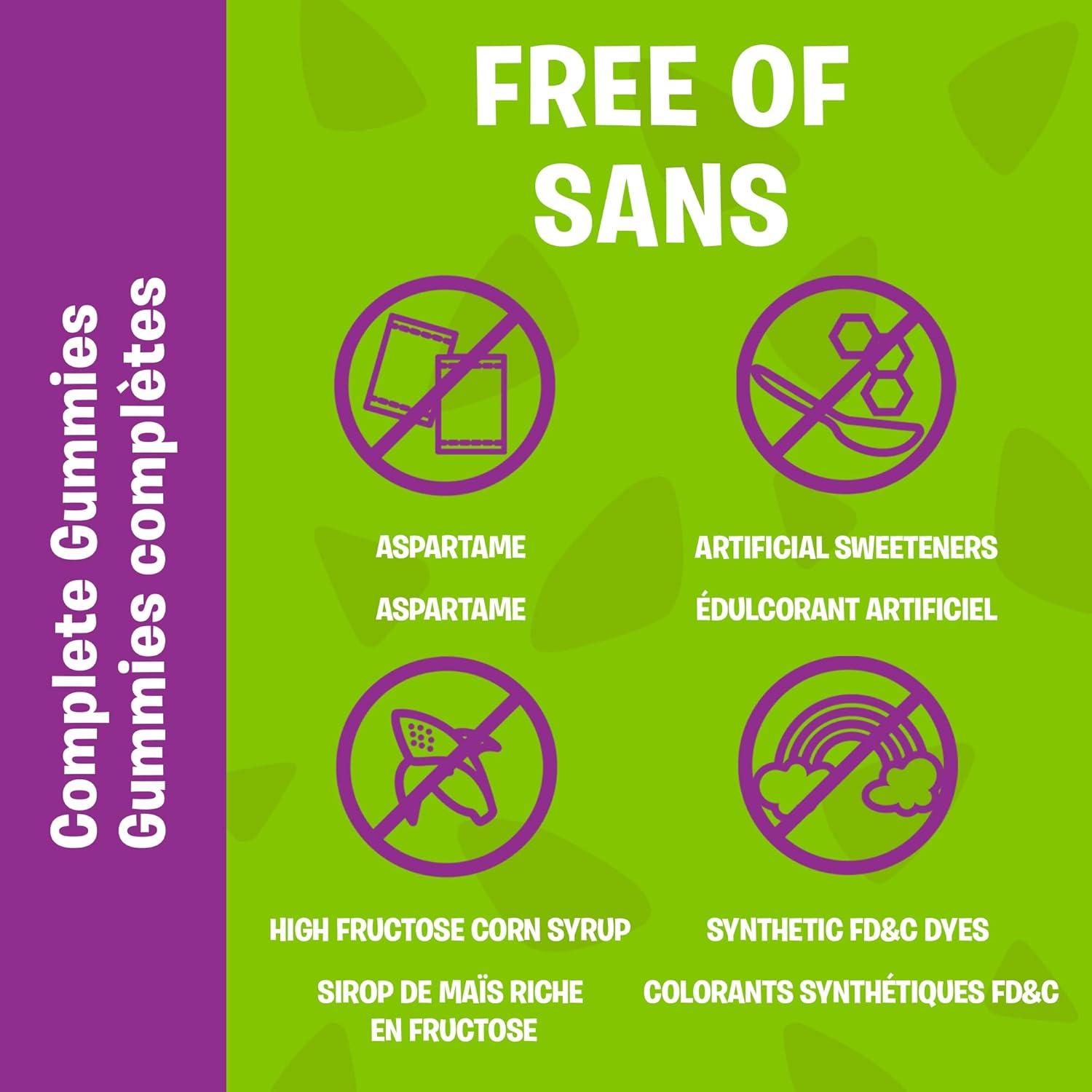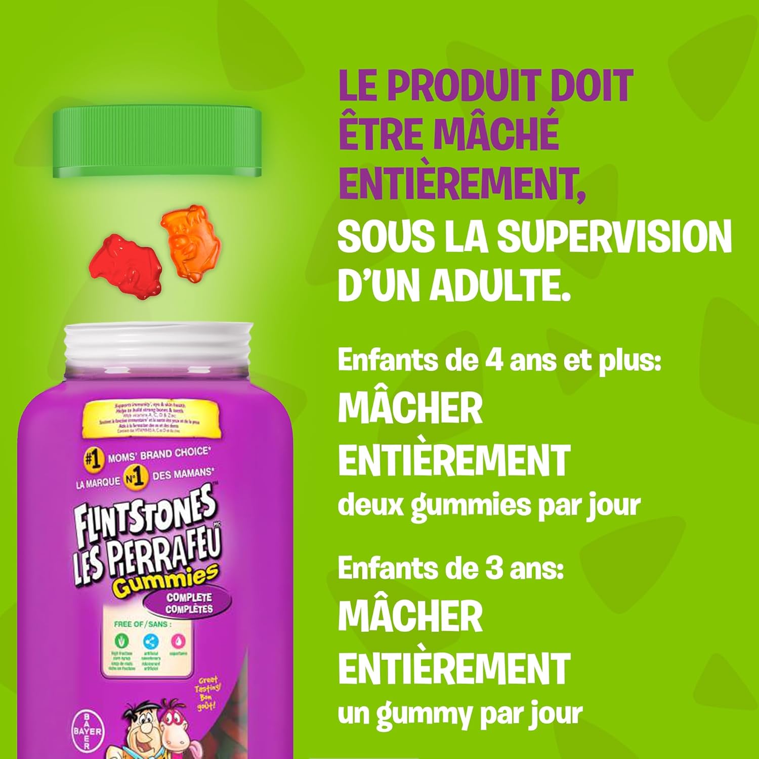 作为父母,您愿意为孩子做任何事。这就是为什么您总是会付出额外努力来帮助他们保持健康。这包括让他们服用 FLINTSTONES 复合维生素。全新改良*的 Flintstones Complete 儿童软糖含有维生素 A、C、D 和锌,可增强免疫力**、增强眼部和皮肤健康,并有助于强健骨骼和牙齿。Flintstones Complete 软糖提供维生素和矿物质中的必需营养素来源,例如维生素 A、维生素 B6、维生素 B12、维生素 C、维生素 D、维生素 E、叶酸、生物素、碘、泛酸和锌,有助于为您的孩子提供常规饮食之外的营养支持。Flintstones Complete 有耐嚼的水果口味和有趣的人物造型,不含人工甜味剂、不含合成 FD&C 染料、不含高果糖玉米糖浆和不含阿斯巴甜。 FLINTSTONES 妈妈的首选品牌*** 儿童维生素深受家长和儿科医生的信赖,Flintstones 复合维生素 50 多年来一直为孩子们提供营养支持,帮助他们健康茁壮成长。三岁及以上儿童:每日咀嚼一粒软糖。四岁及以上儿童:每日咀嚼两粒软糖。与食物同服,可在服用其他药物或天然保健品前或后数小时服用。* 与之前的 Flintstones 复合维生素软糖相比 **有助于维持免疫功能 *** 数据已存档