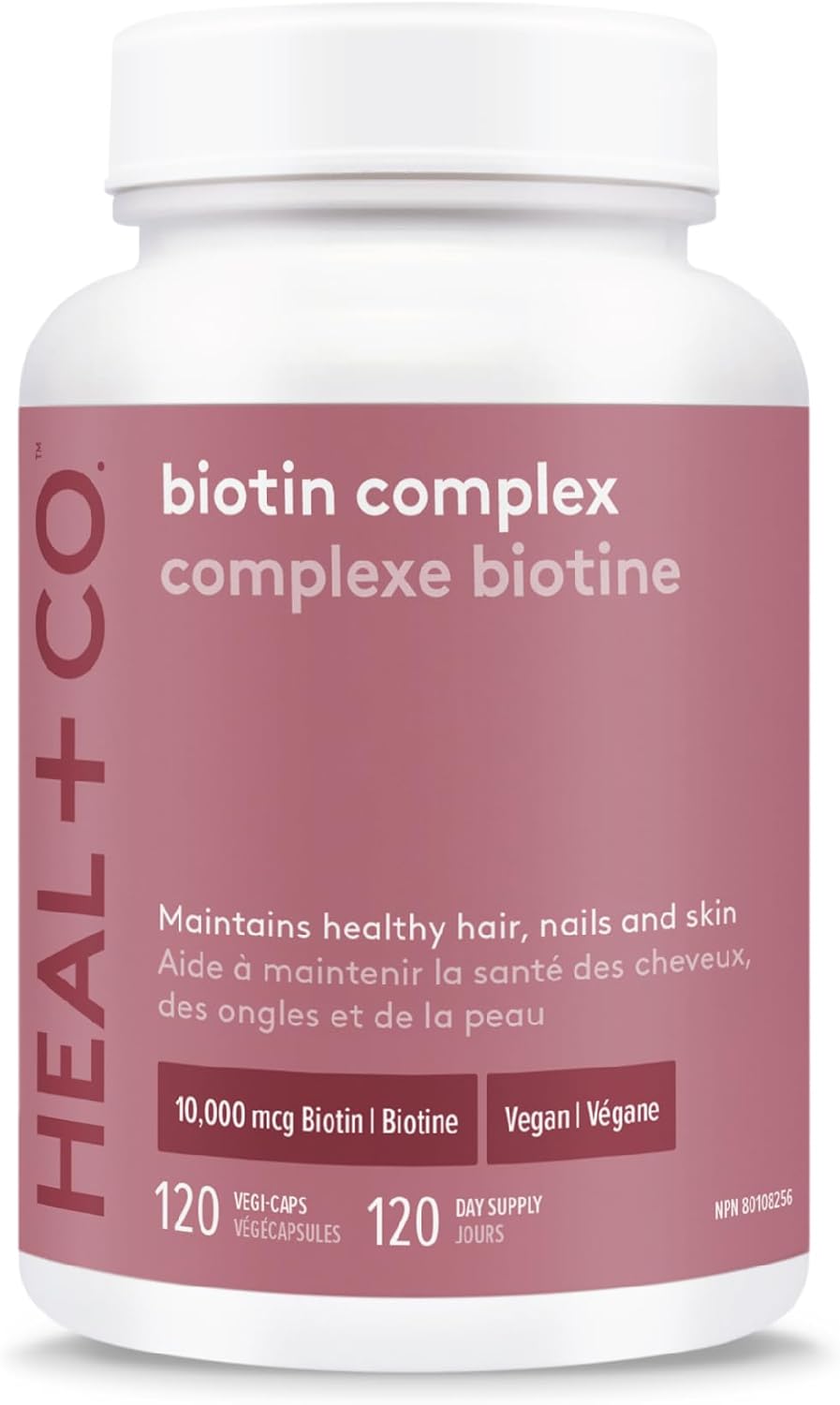 HEAL + CO. 生物素复合物 | 生物素、钙、硅、镁、维生素 D2 | 10,000 微克生物素补充剂 | 支持皮肤、头发和指甲健康 | 120 粒胶囊
