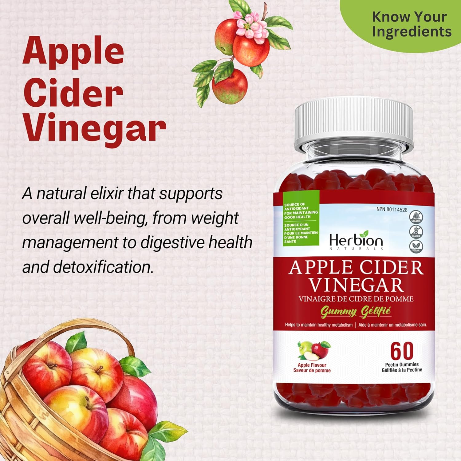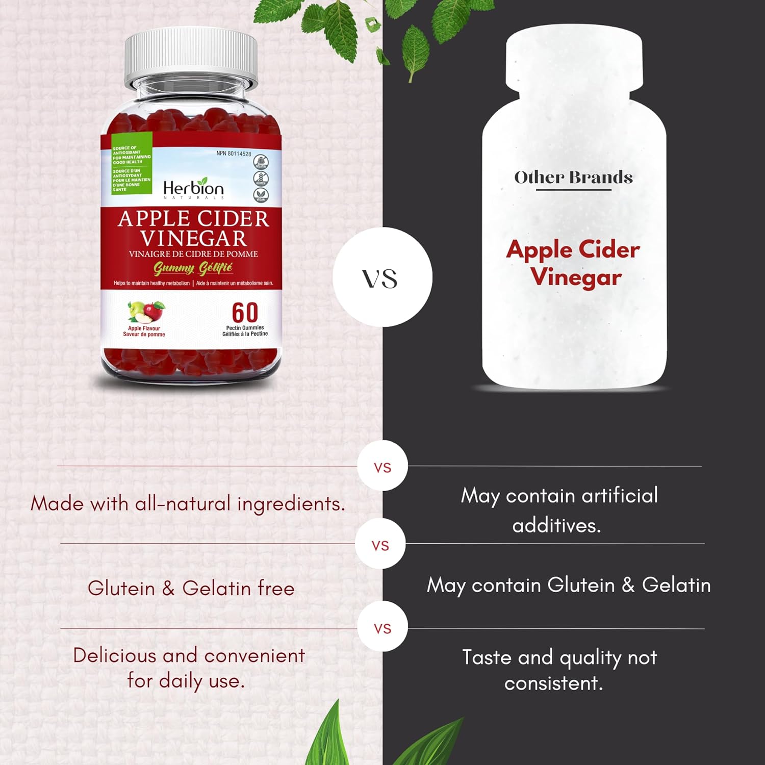 Herbion Naturals 苹果醋软糖,含叶酸、石榴、甜菜根和维生素 B12,是维持身体健康和新陈代谢的抗氧化剂来源,成人适用,60 粒果胶软糖,苹果味
