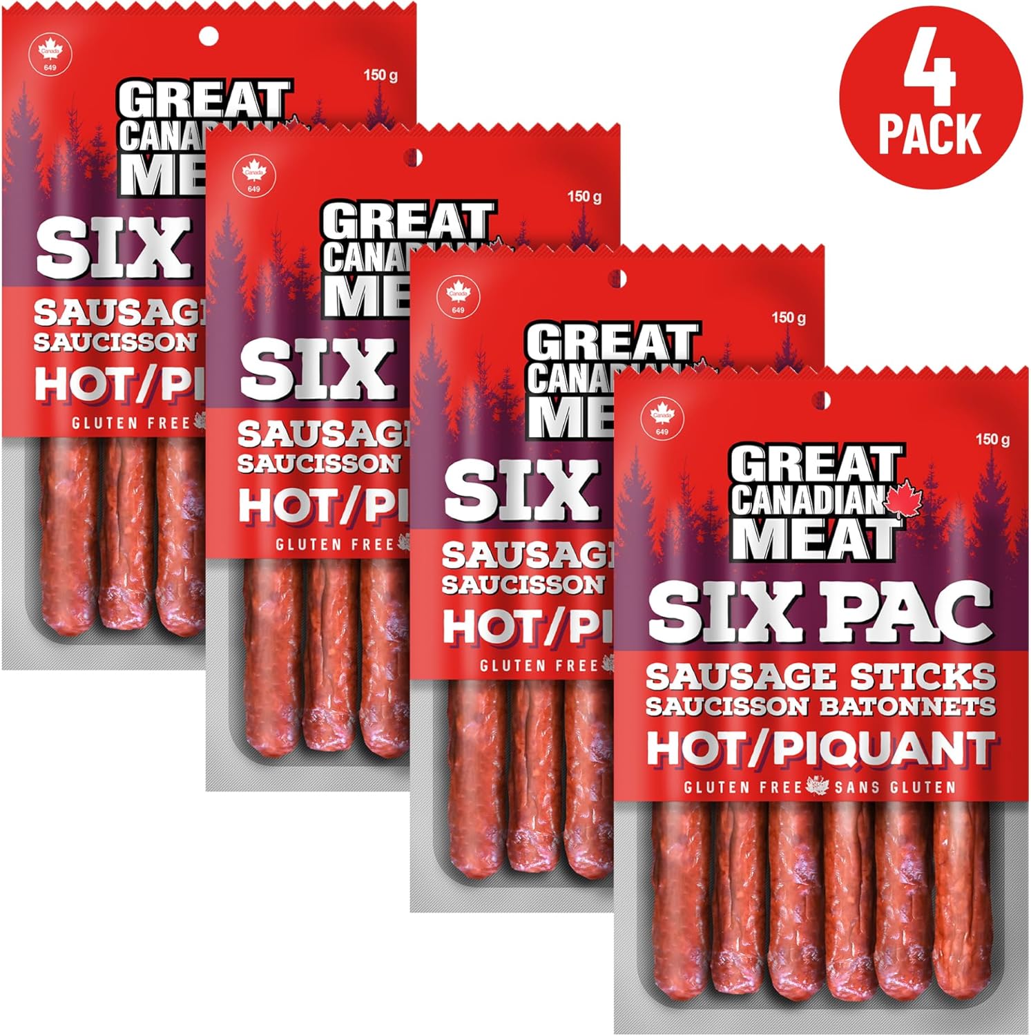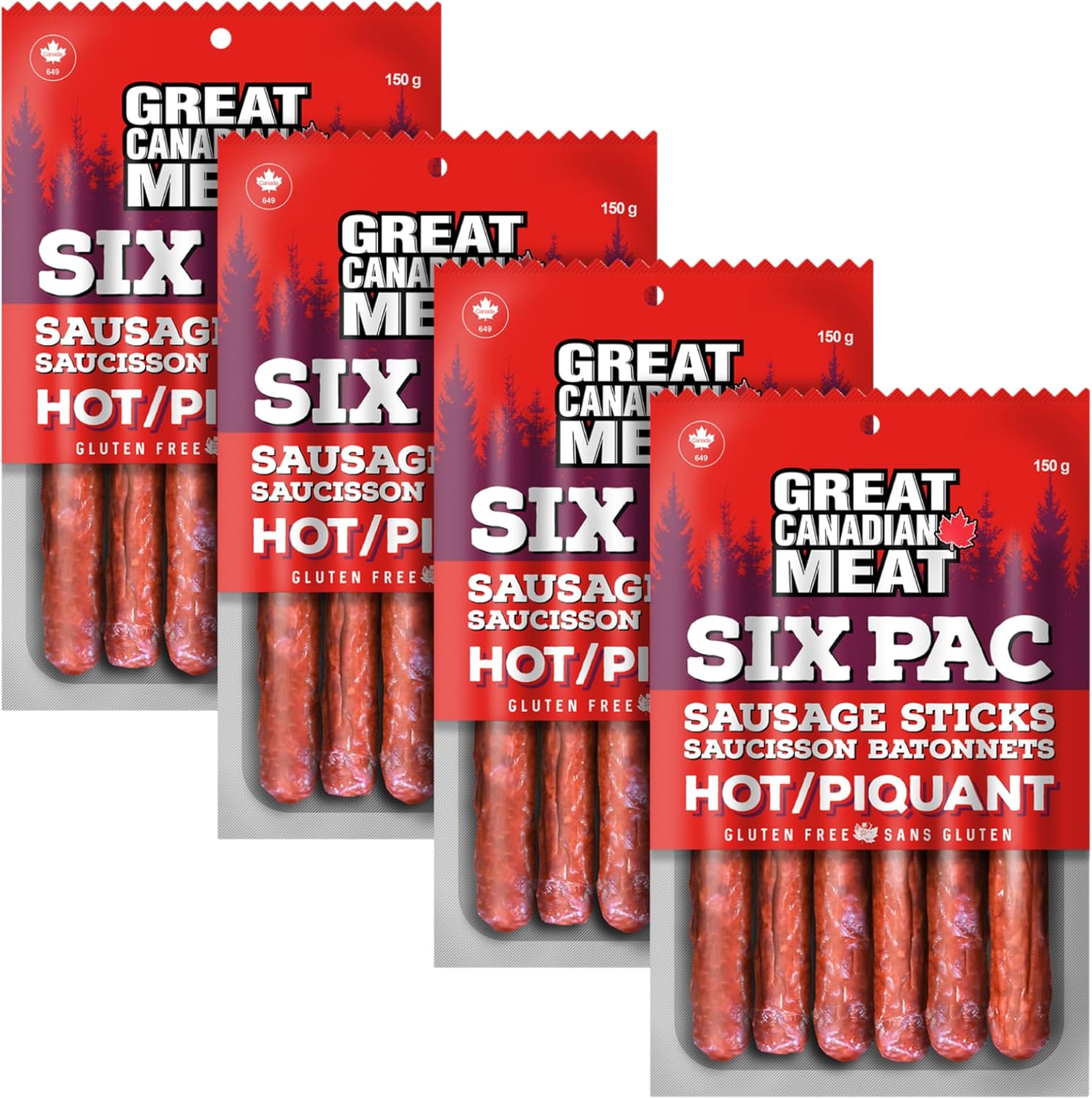 热熏香肠条 - 4 包,每包 4 x 150 克,Great Canadian Meat 出品,肉类零食,散装香肠条盒,适合肉食爱好者。零食之选,古饮食法,无麸质,高蛋白