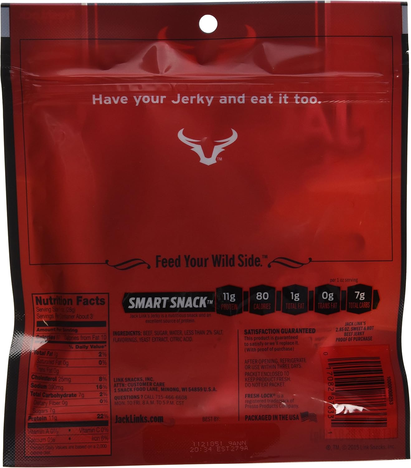 Jack Link's 肉类零食牛肉干,甜辣口味,2.85 盎司(4 包)