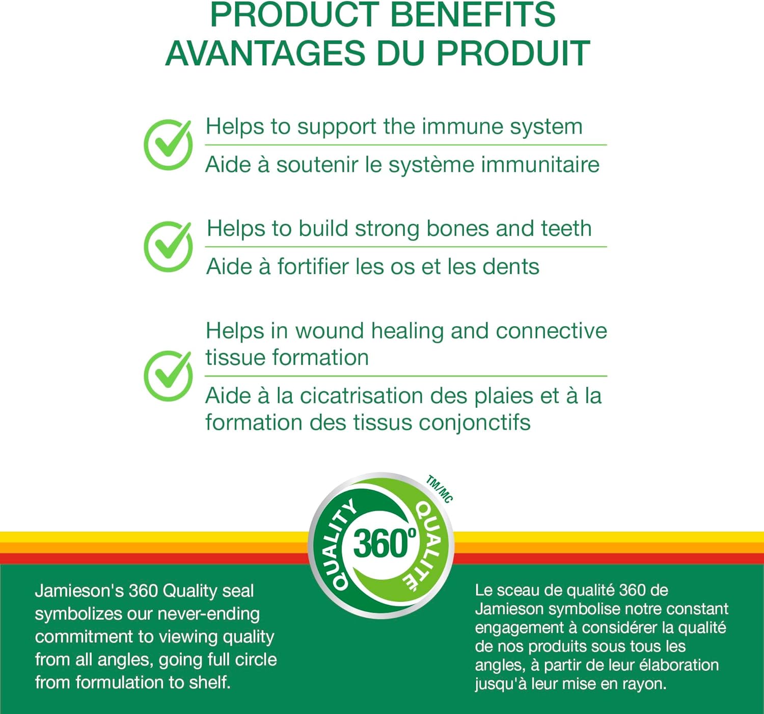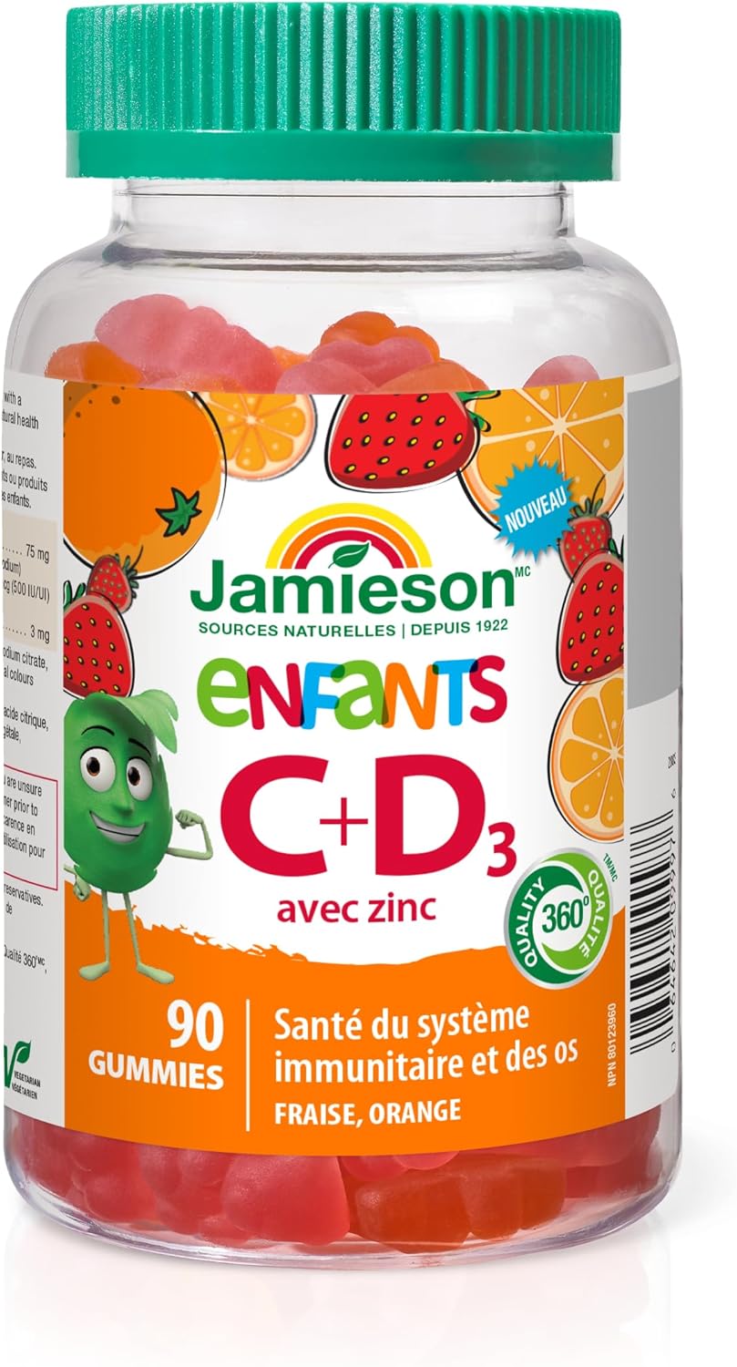 Jamieson 儿童维生素 C + D3 锌软糖,美味又有趣,有助于增强孩子的免疫系统和骨骼健康。每颗素食水果味软糖富含 75 毫克维生素 C、500 国际单位维生素 D3 和 3 毫克锌。