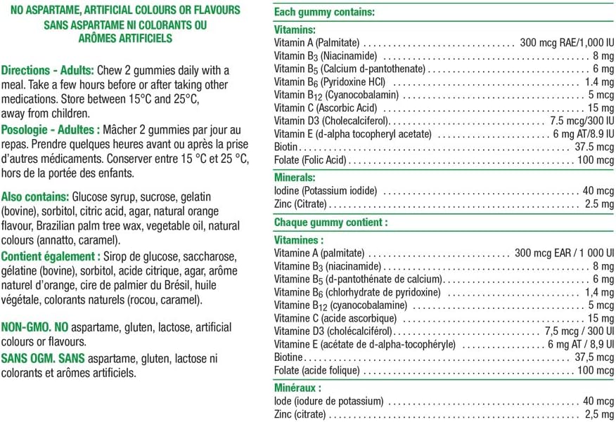 Jamieson 成人复合维生素软糖 新品 150 粒装 Jamieson 成人复合维生素软糖采用营养均衡的配方,富含维生素 A、B3、B5、B6、B12、C、D3、E、生物素和叶酸,以及重要的矿物质,可满足您每日的维生素需求。我们的 100% 天然软糖不含阿斯巴甜、人工色素或人工香料。Jamieson 高效生物素软糖 100 粒装 Jamieson 生物素软糖为您提供高效剂量的生物素(维生素 B7),帮助您由内而外地拥有自然美。每份美味的软糖都含有 2,500 微克生物素。生物素是一种天然的美容营养素,持续使用有助于维持更浓密的头发、更坚固的指甲和更健康的皮肤。享用 3 种天然口味的软糖:甜柠檬、芒果桃子和水果宾治。