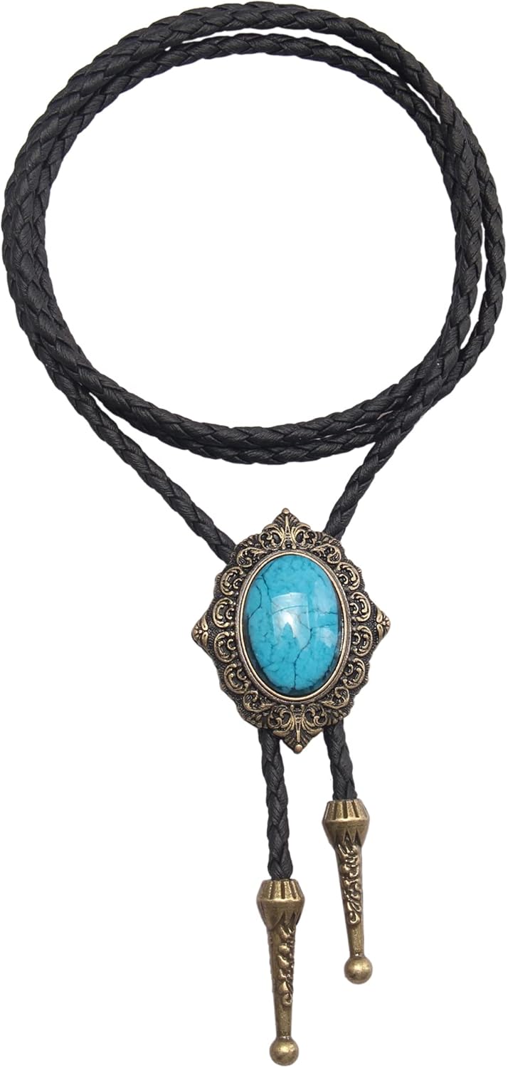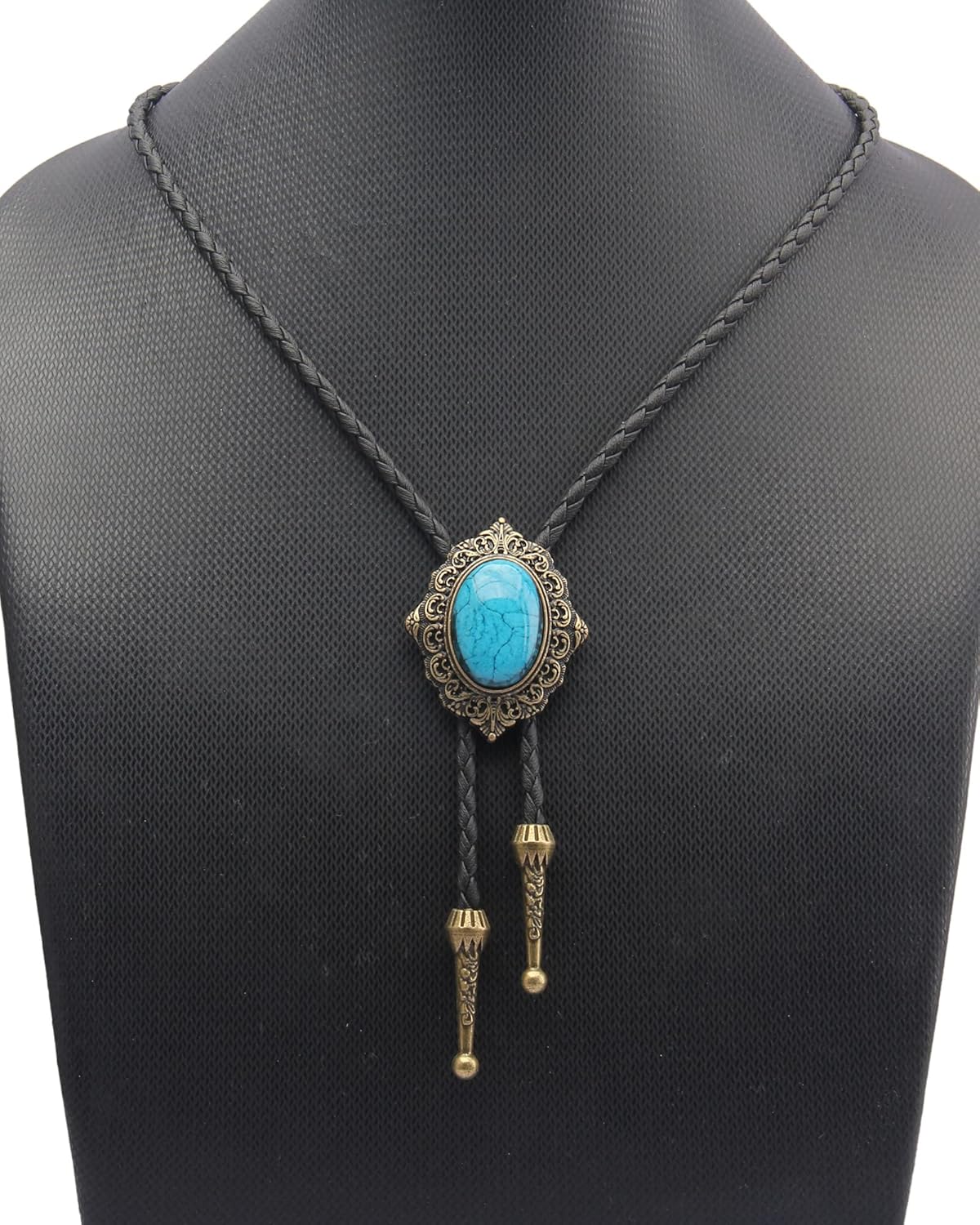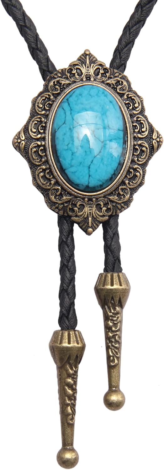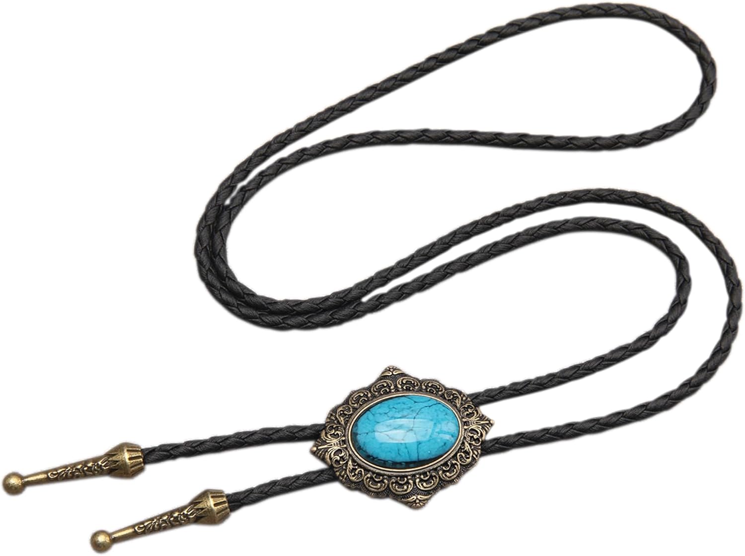 Joxevyia - 绿松石男士波洛领带西部牛仔领带男女通用配饰伴郎礼物,Jbl007-turquoise-gold,Único