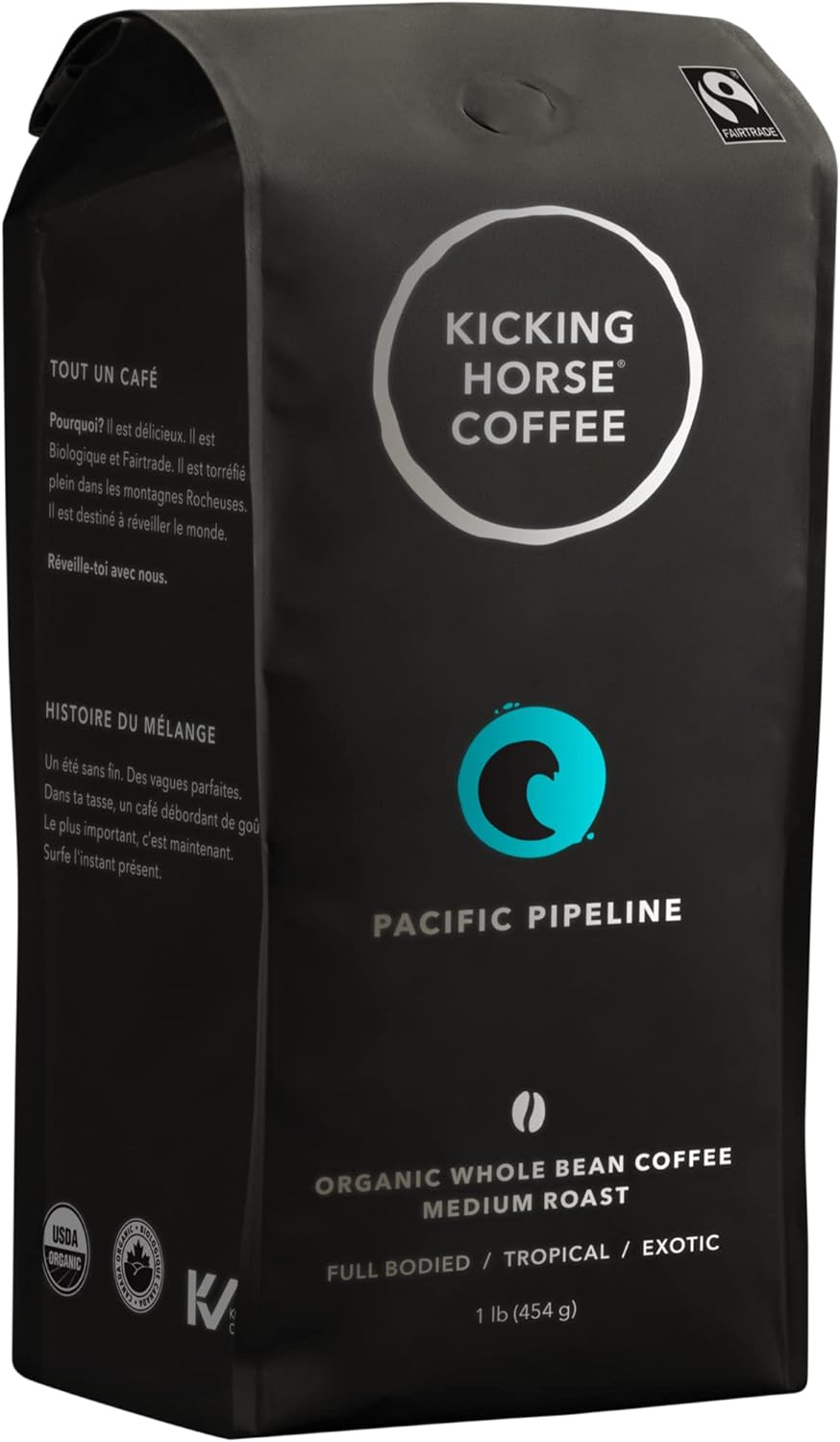 Kicking Horse Coffee,Pacific Pipeline,中度烘焙,整粒咖啡豆,1磅 - 有机认证、公平贸易、犹太洁食咖啡。浓郁的热带风情,充满异域风情。想象一下无尽的夏日。完美的海浪连绵数日。再来一杯美味的灵魂咖啡,或许最重要的时刻就在此刻。继续前行。Kicking Horse Coffee,Three Sisters,中度烘焙,研磨咖啡,284克 - 有机认证、公平贸易、犹太洁食咖啡。口感顺滑,咸香诱人。三姐妹是加拿大落基山脉的三座巍峨山峰。我们以浅烘焙、中烘焙和深烘焙的三重力量,向这些雄伟的山峰致敬。美味再创高峰!
