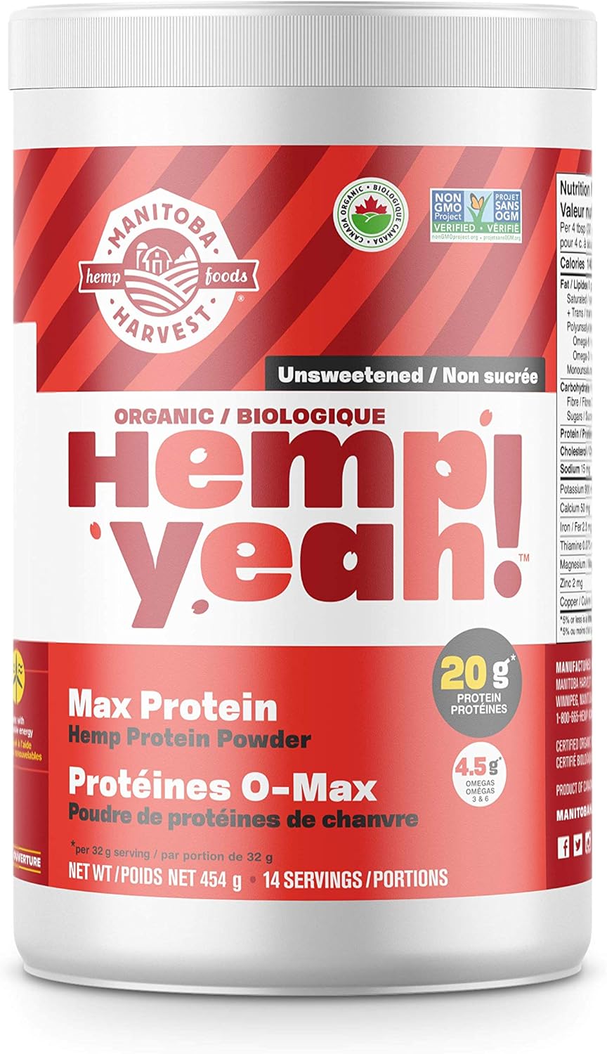 Manitoba Harvest Hemp Yeah! 有机蛋白质混合物-巧克力 454gNEW Hemp Yeah! 植物蛋白质混合物巧克力是美味的有机大麻和豌豆蛋白以及椰子糖和香草味的混合物。本产品每份含有 20 克有机植物蛋白、1.9 克 Omega 3&6 和 4 克膳食纤维。Hemp Yeah! 植物蛋白质混合物与您最喜爱的非乳制饮料混合后味道极佳。只需摇匀,即可随时随地享受营养。时间充裕?加一勺花生酱和一根香蕉,让您的早餐更加丰盛。或者用咖啡代替非乳制饮料,增添超级能量。Manitoba Harvest Hemp 有机最大蛋白粉,无糖,454 克,每份含 20 克蛋白质和 4.5 克 Omega 3/6每 32 克份量含 20 克蛋白质,Hemp Yeah!有机无糖Max Protein是完美的植物蛋白,提供所有必需氨基酸(非常适合运动员、纯素食者和素食者)。它口感温和,质地顺滑,加入您最爱的冰沙配方中,美味无比。不妨试试与香蕉、花生酱和杏仁奶混合,享受美味!