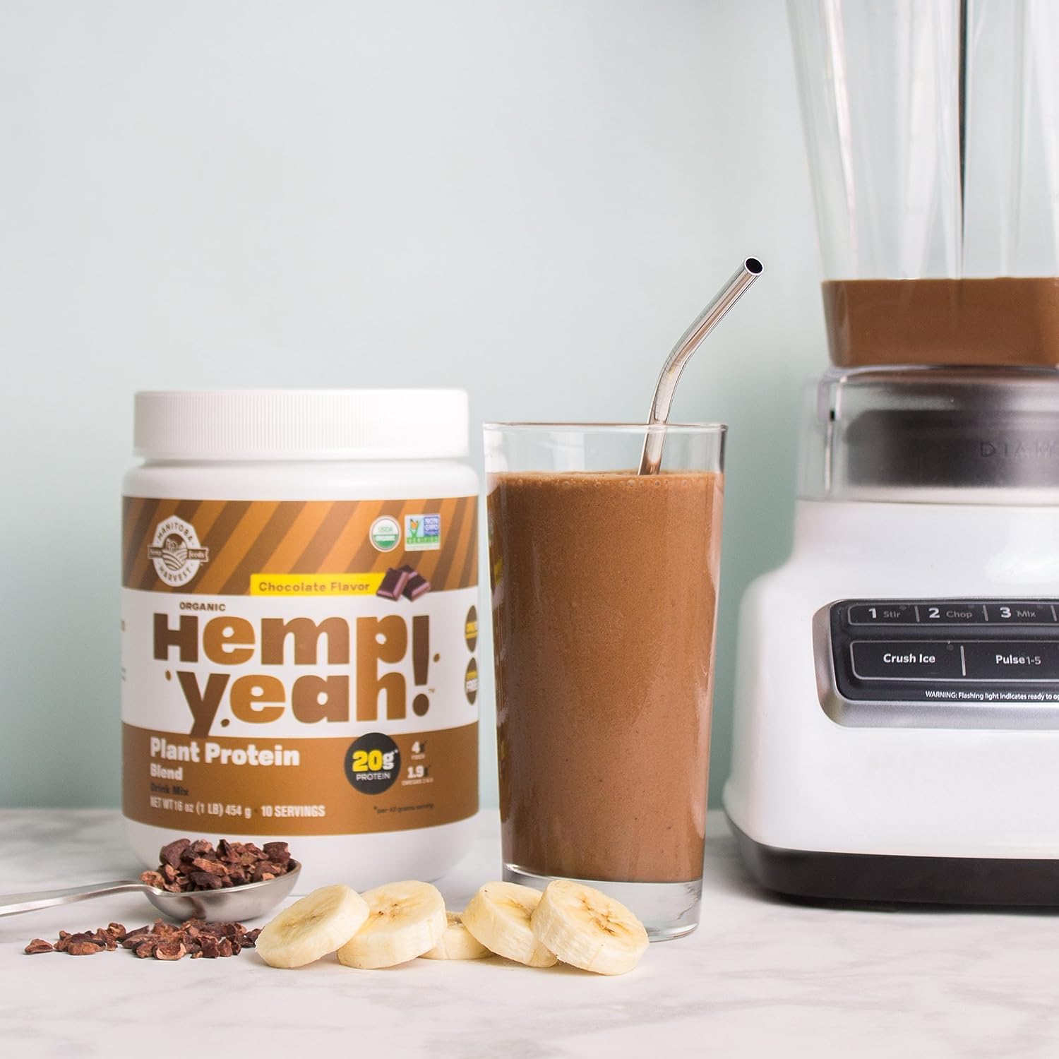 Manitoba Harvest Hemp Yeah! Org 蛋白质混合物 - 巧克力 454 克 & 大麻有机最大蛋白质粉,无糖,454 克,每份含 20 克蛋白质和 4.5 克 Omega 3/6
