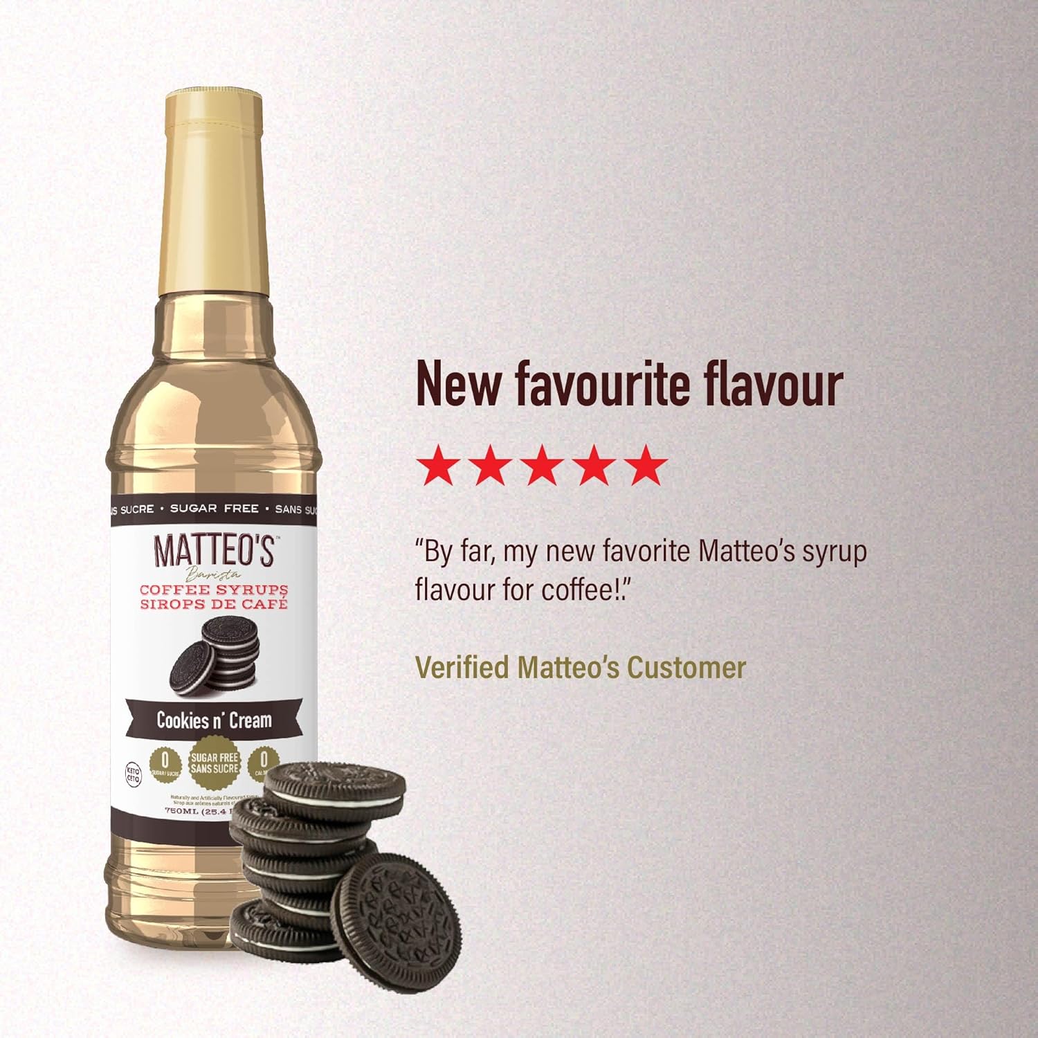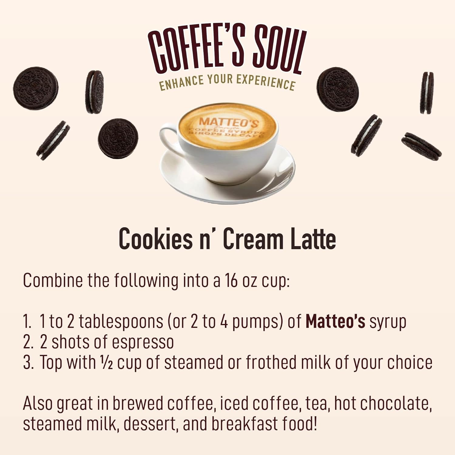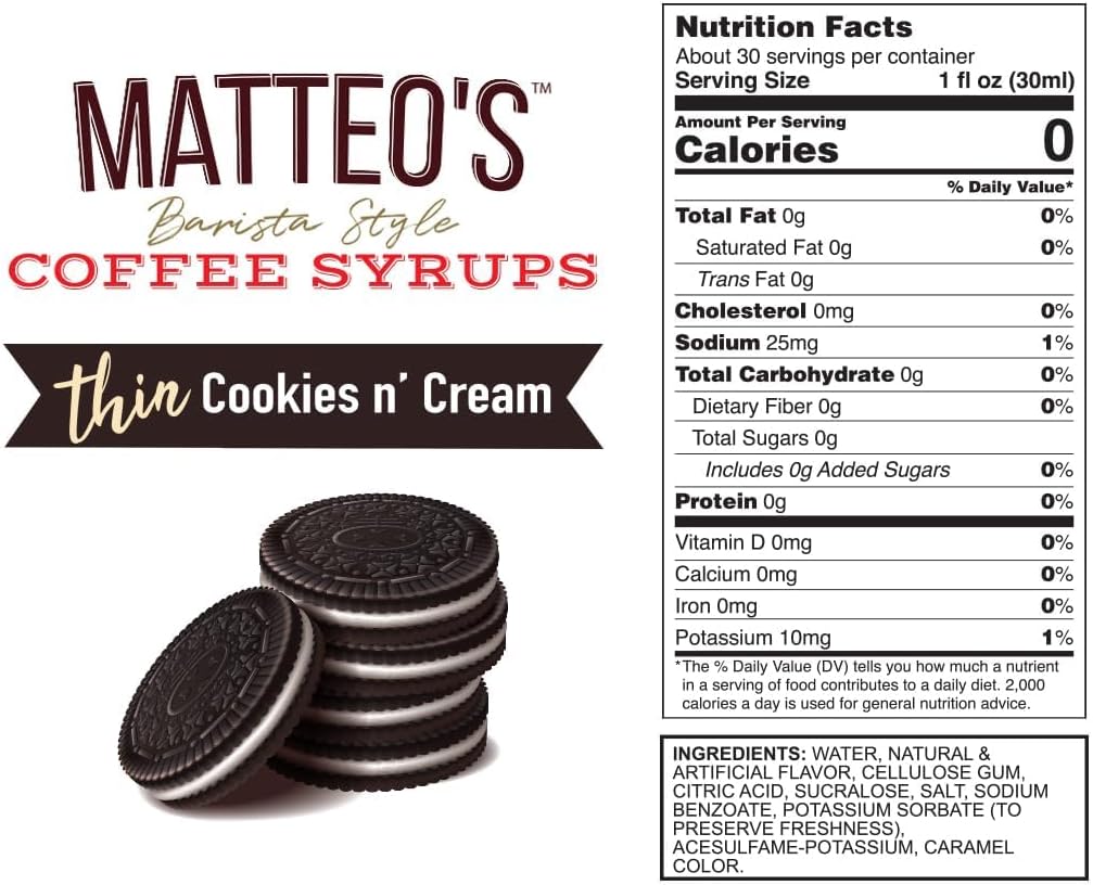 Matteo's Barista 风格无糖咖啡糖浆,曲奇奶油口味,零卡路里和糖,适合生酮饮食,适合拿铁、卡布奇诺、浓缩咖啡、美式咖啡,口感浓郁,25.4 盎司 1 包
