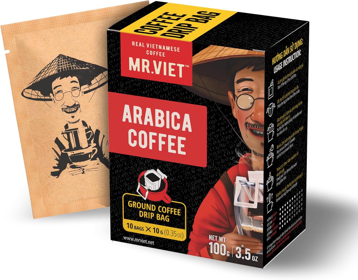 越南先生阿拉比卡滴滤袋 越南阿拉比卡咖啡,随处可煮 我们的阿拉比卡滴滤袋可将咖啡带到任何地方。每个袋内预先装有新鲜研磨的高地阿拉比卡咖啡,展开后即可冲泡成单份咖啡 — 无需设备,干净整洁。味道如何?干净、均衡、低调复杂。一杯口感顺滑、酒体适中的咖啡中,有柔和的柑橘、烤坚果和一丝可可的味道。没有苦味,只有清澈。口感:明亮 · 坚果味 · 可可余味 详情: – 大叻种植的阿拉比卡咖啡 – 便携式单份滴滤袋 – 中度烘焙,味道纯净 – 直接在杯中冲泡 — 只需加热水 真正的咖啡。真正的仪式。随时随地。