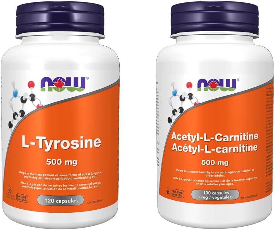 NOW L-酪氨酸(自由形态)胶囊,500毫克,120粒,乙酰左旋肉碱500毫克,100粒